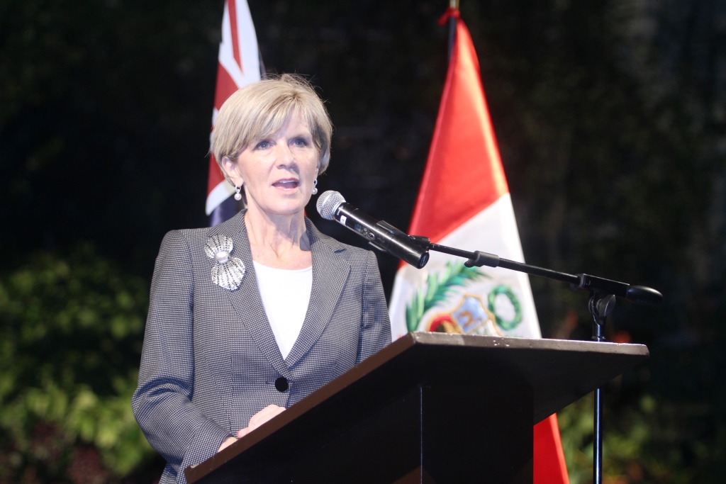 Minister Bishop delivering remarks at the Bilateral Reception, Residence of the Australian Embassy. 9 December 2014.