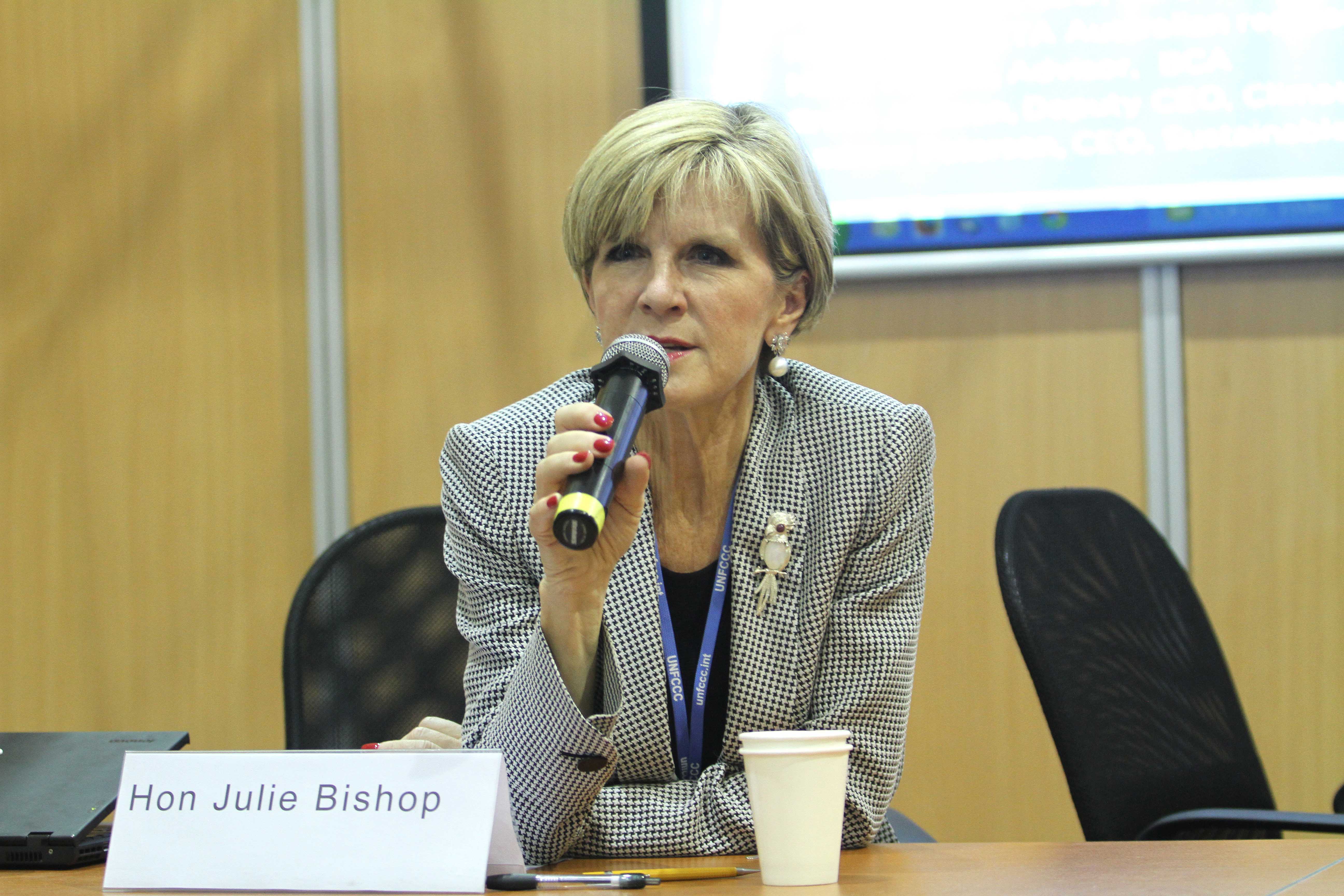 The Hon Julie Bishop delivering remarks at Carbon Market Institute event, COP20. 10 December 2014.
