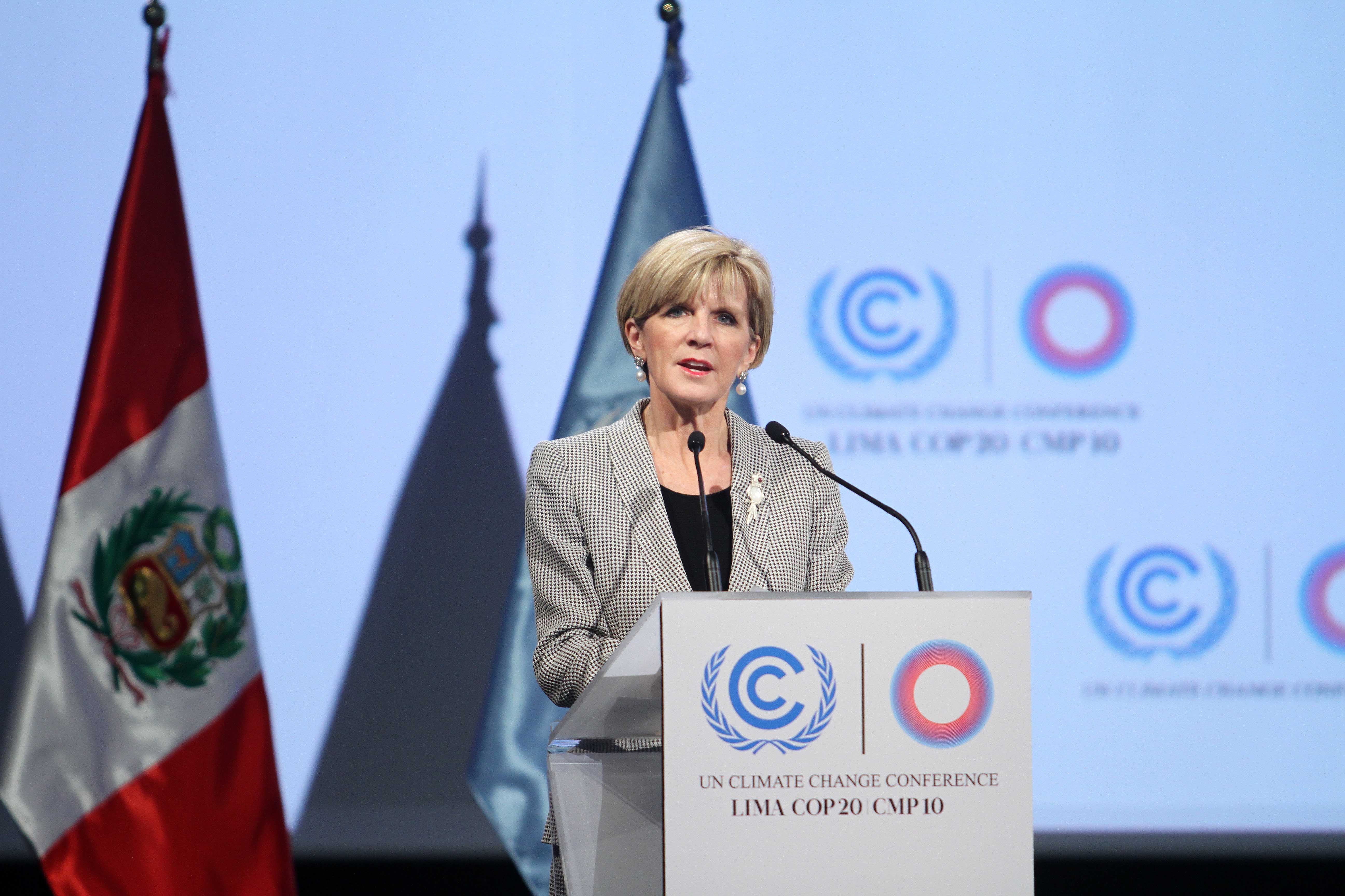 The Hon Julie Bishop delivering remarks at High Level Ministerial dialogue on new agreement, at COP20. 10 December 2014.