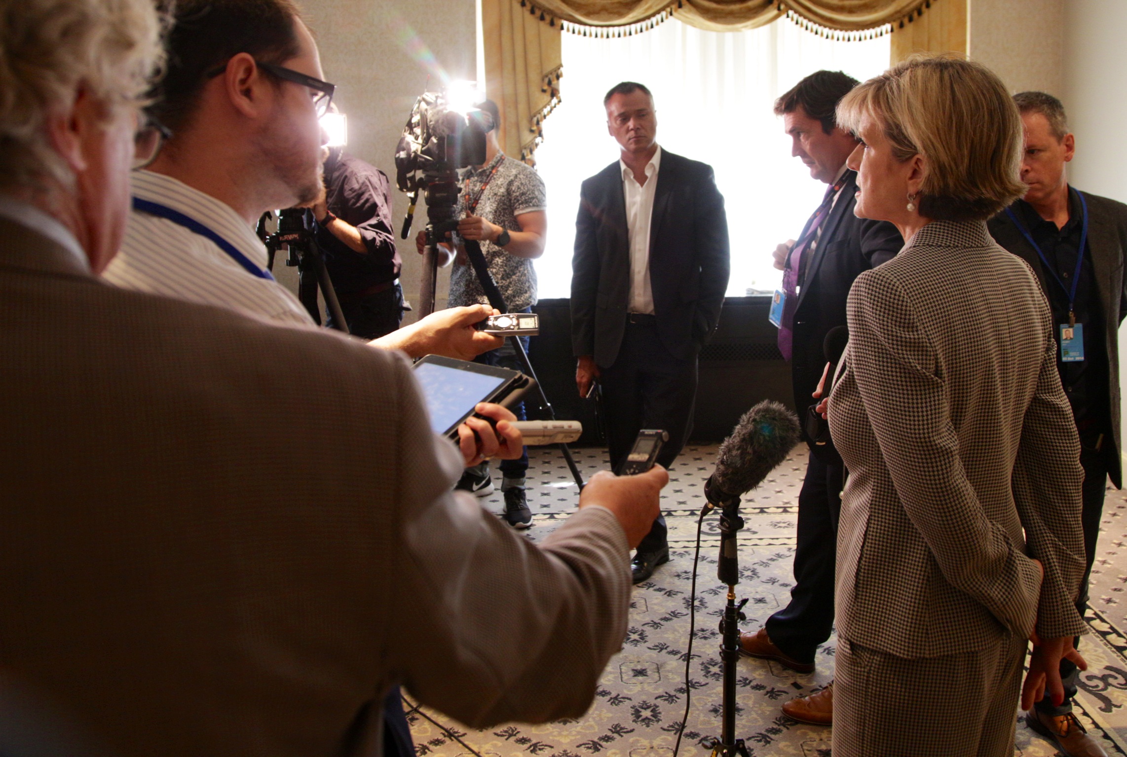Foreign Minister Julie Bishop speaks with Australian press following a meeting of the Global Counter-Terrorism Forum in New York. 23 September, 2014. (Trevor Collens/DFAT)