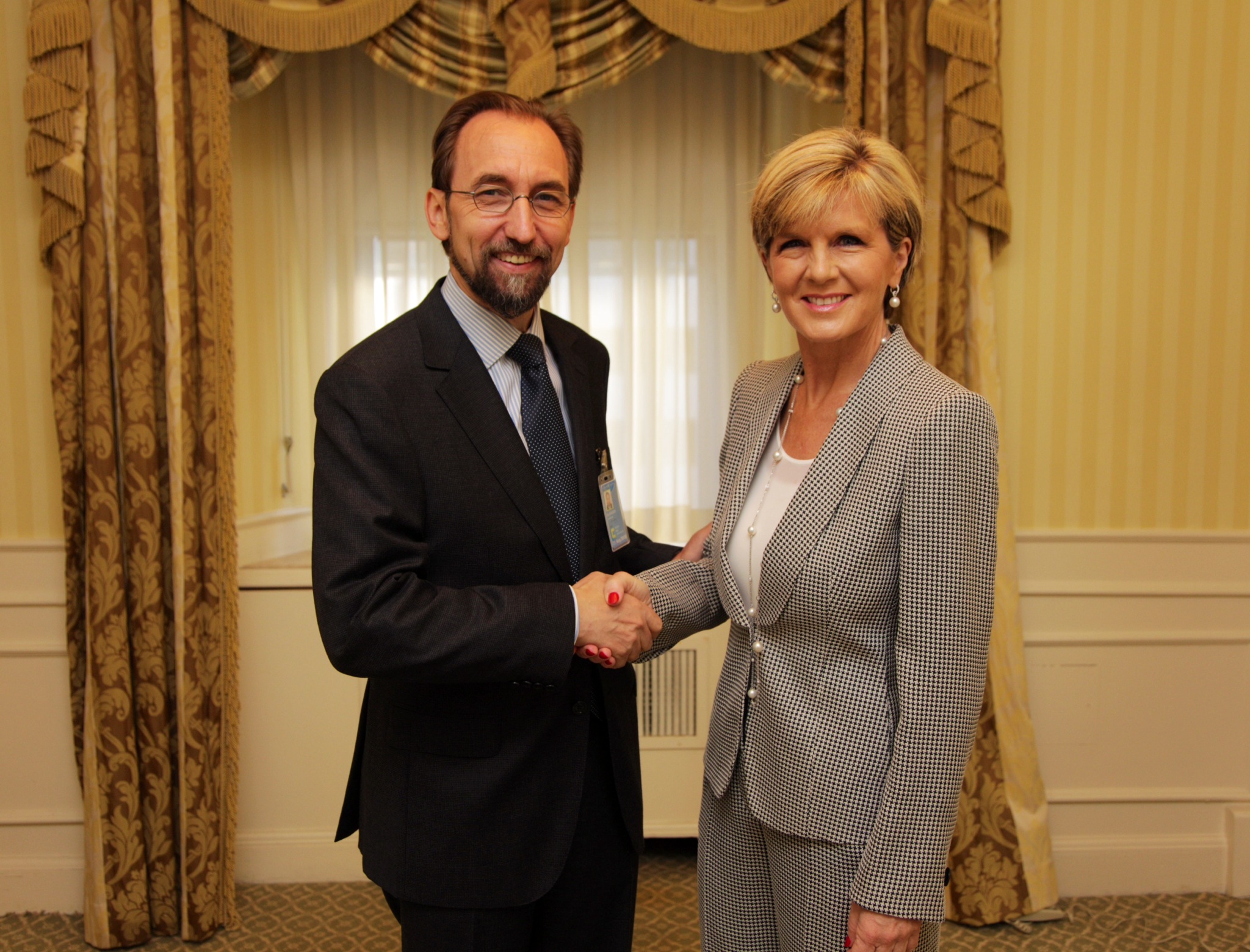 Foreign Minister Julie Bishop meets with United Nations High Commissioner for Human Rights, Prince Zeid Ra'ad Al-Hussien in New York. 23 September 2014. (Trevor Collens/DFAT)