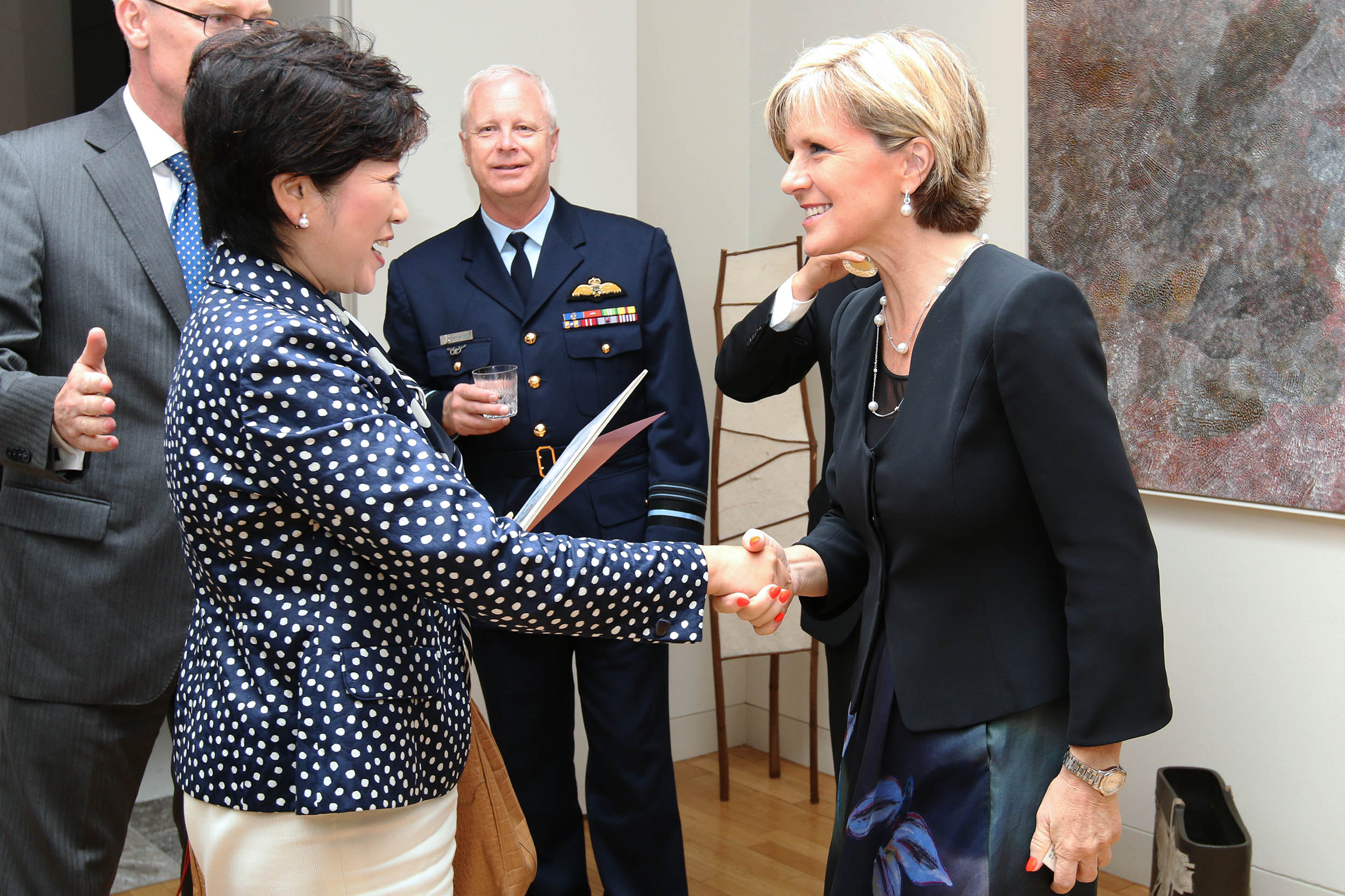 Foreign Minister Julie Bishop meets Ms Yuriko Koike (LDP Lower House Member) at a reception in Tokyo.