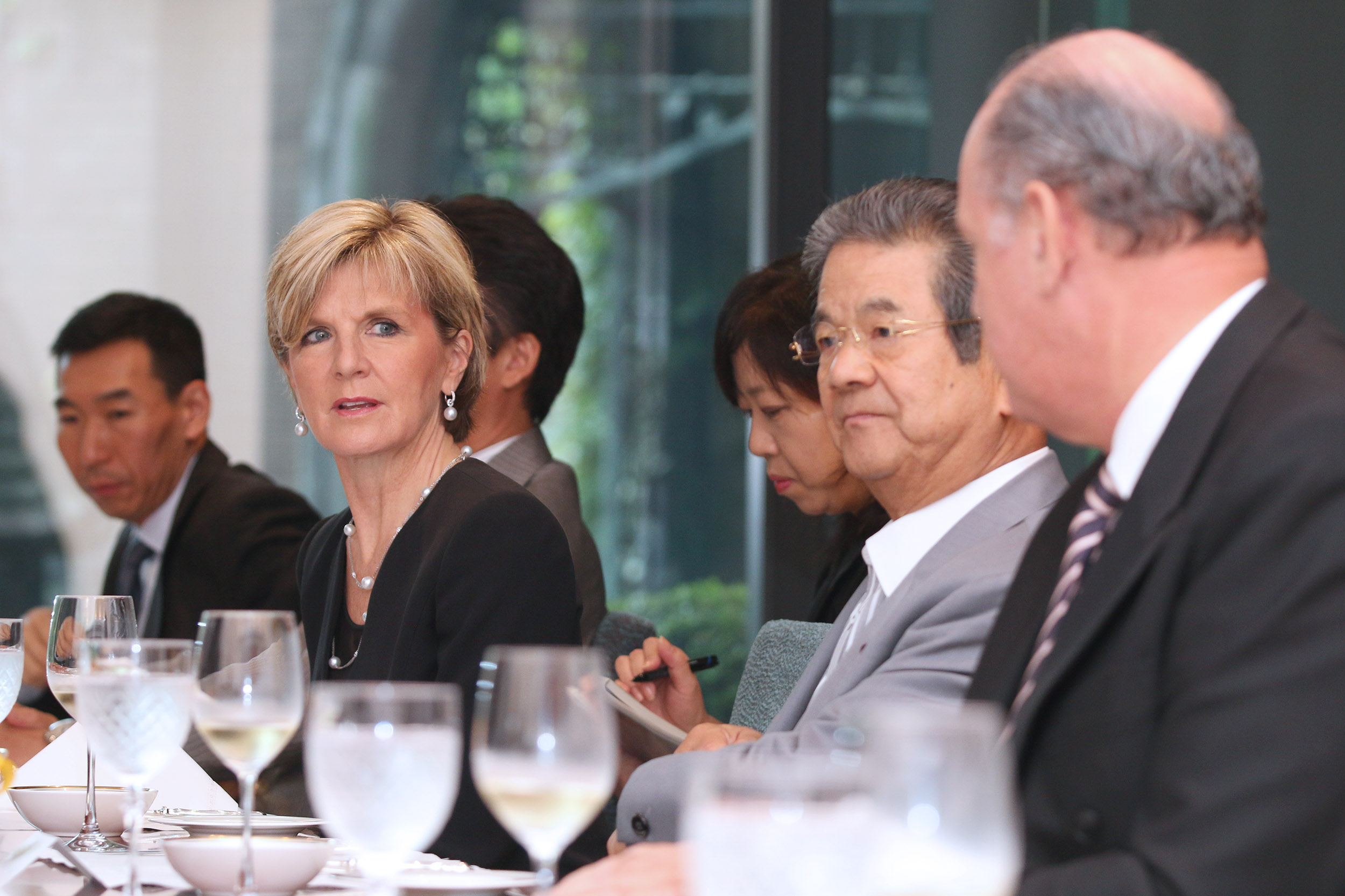The Hon Julie Bishop MP, The Minster for Foreign Affairs discussing defence and security issues with Japanese politicians, including Mr Toshimi Kitazawa (DPJ Upper House Member).