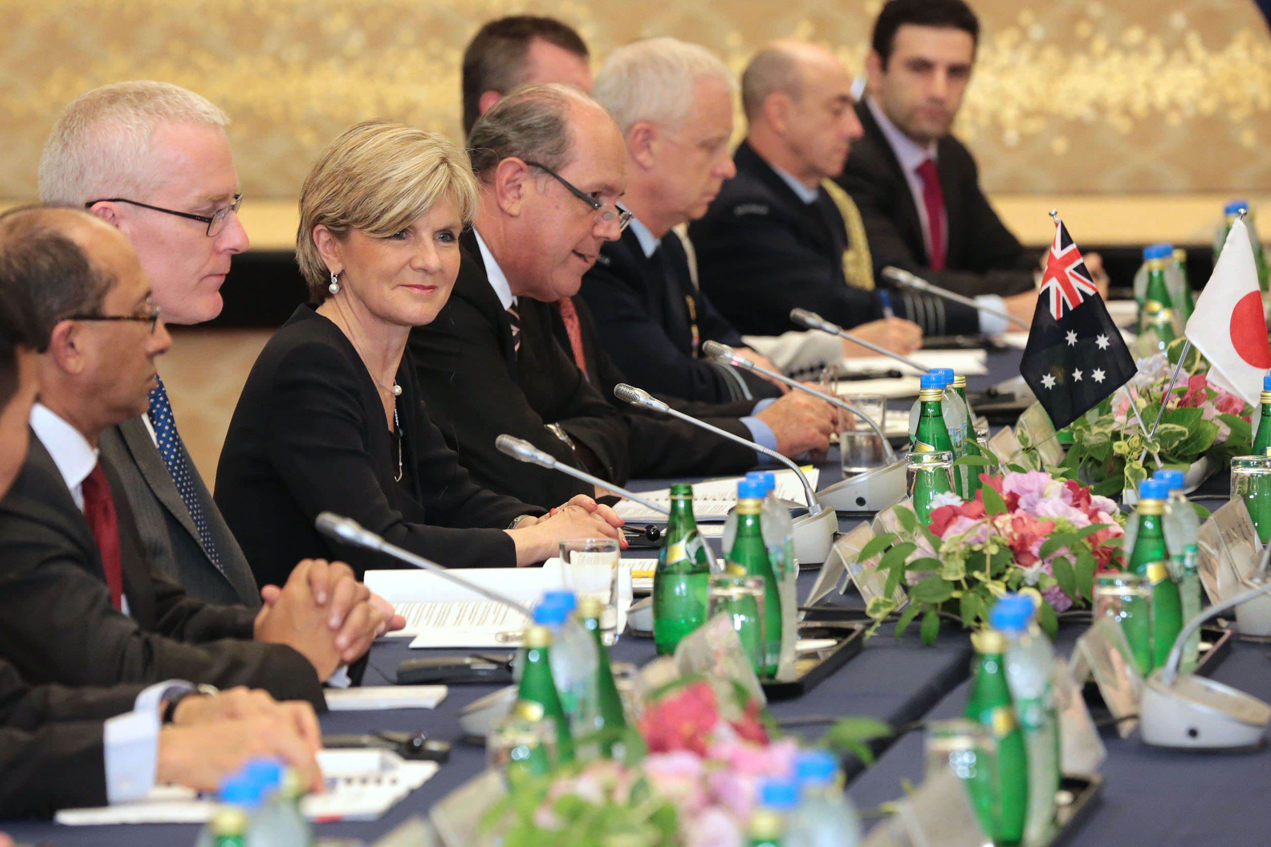 The Australian delegation to the 2+2 Foreign and Defence Ministers' Consultation in Tokyo, co-led by the Hon Julie Bishop MP, Minister for Foreign Affairs, and Senator the Hon David Johnston, Minster for Defence on 11 June 2014.