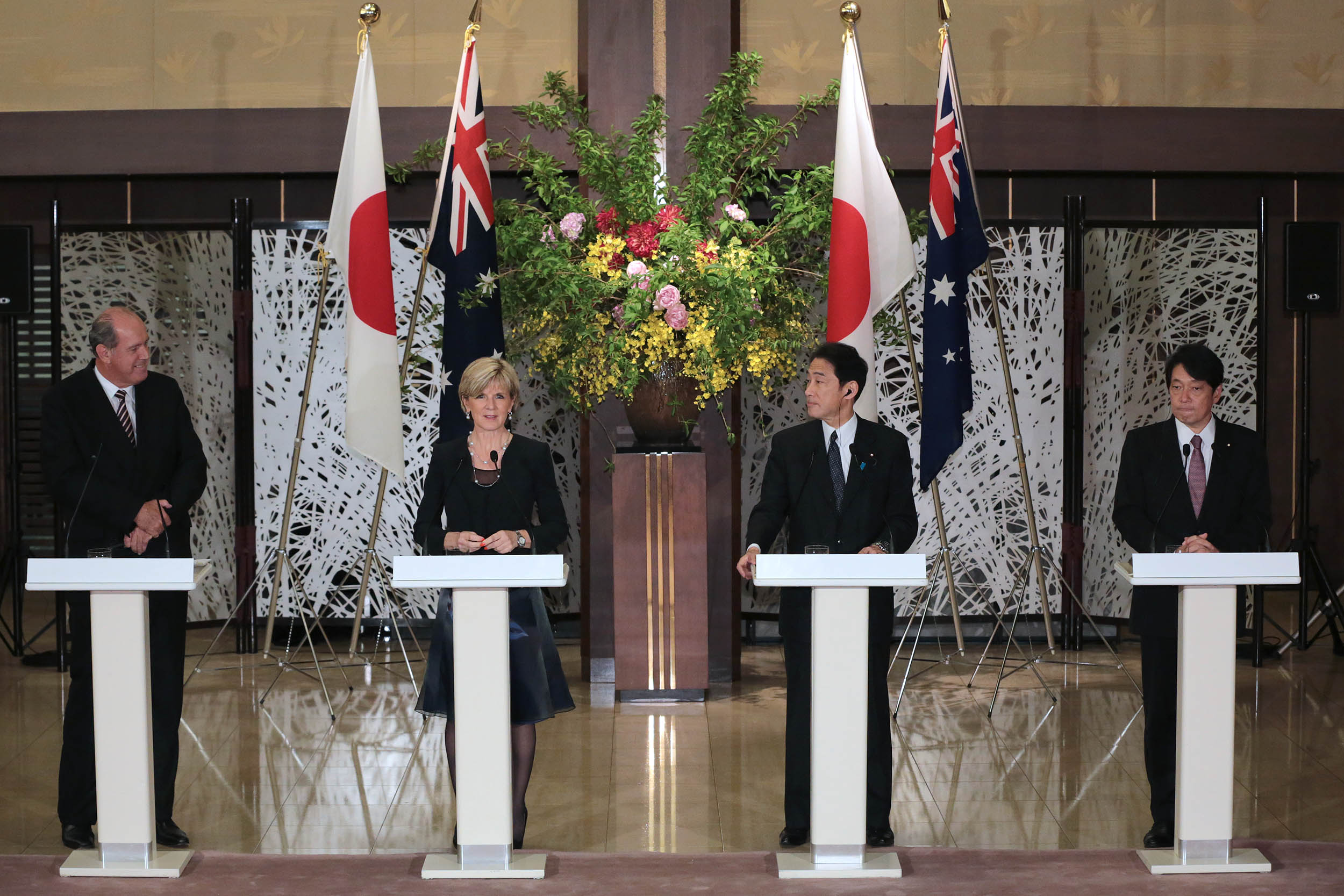 Australia-Japan 2+2 Foreign and Defence Ministers' Consultations Joint Press Conference Tokyo 11 June with Senator the Hon David Johnston, Minister for Defence, the Hon Julie Bishop MP, Minster for Foreign Affairs, Japanese Foreign Minister the Hon Fumio Kishida, and Japanese Defense Minister the Hon Itsunori Onodera.