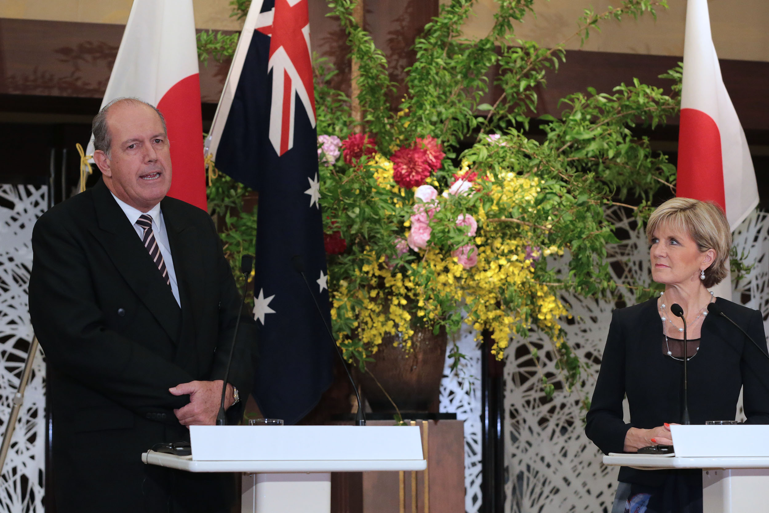 Senator the Hon David Johnston, Minister for Defence, and the Hon Julie Bishop MP, Minster for Foreign Affairs speaking at the Australia-Japan 2+2 Foreign and Defence Ministers' Consultations Joint Press Conference in Tokyo on 11 June.