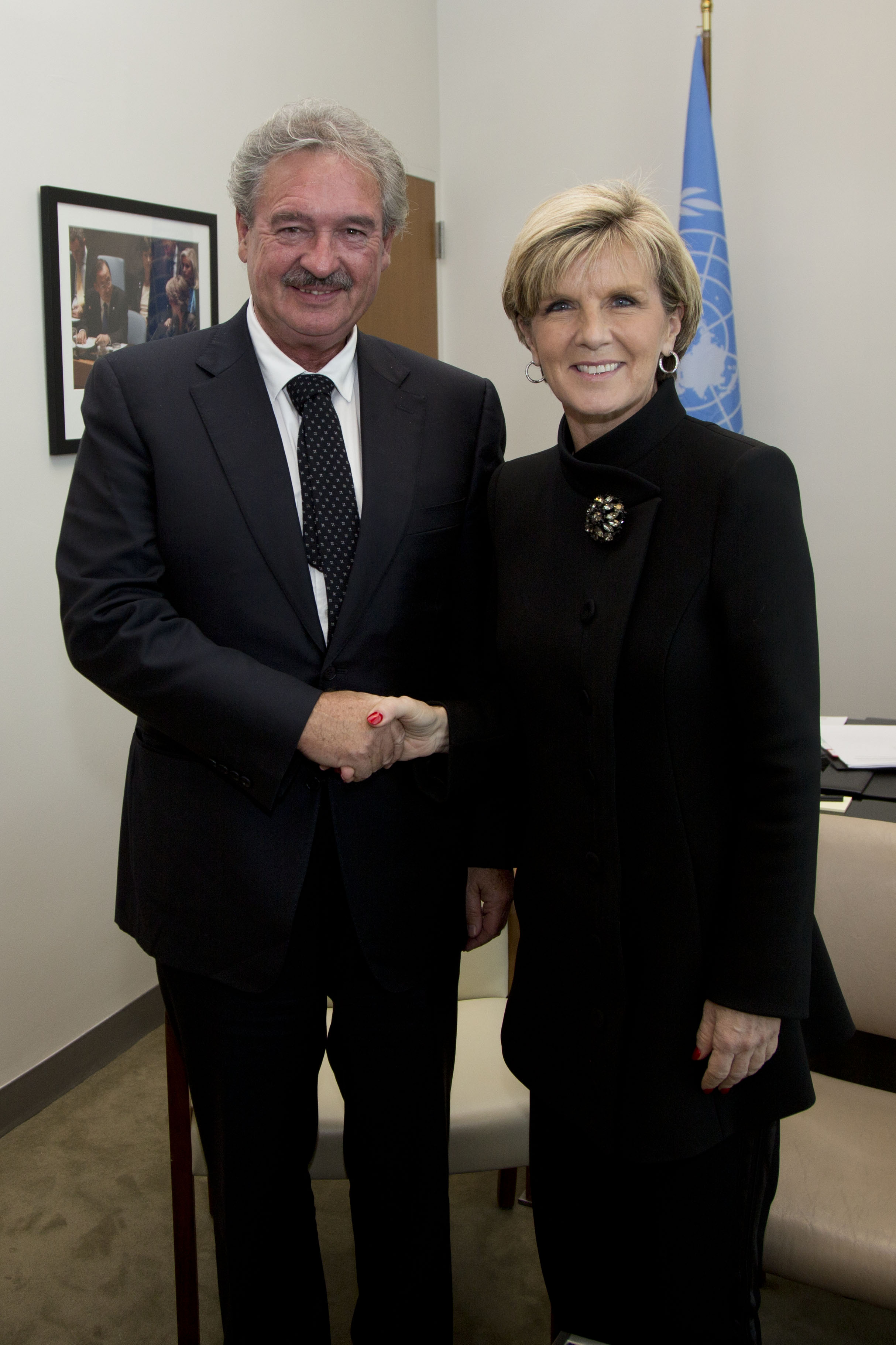 Foreign Minister Julie Bishop meets with her Luxembourg counterpart, Jean Asselborn, at the United Nations in New York, 19 November 2014 (DFAT/Trevor Collens)
