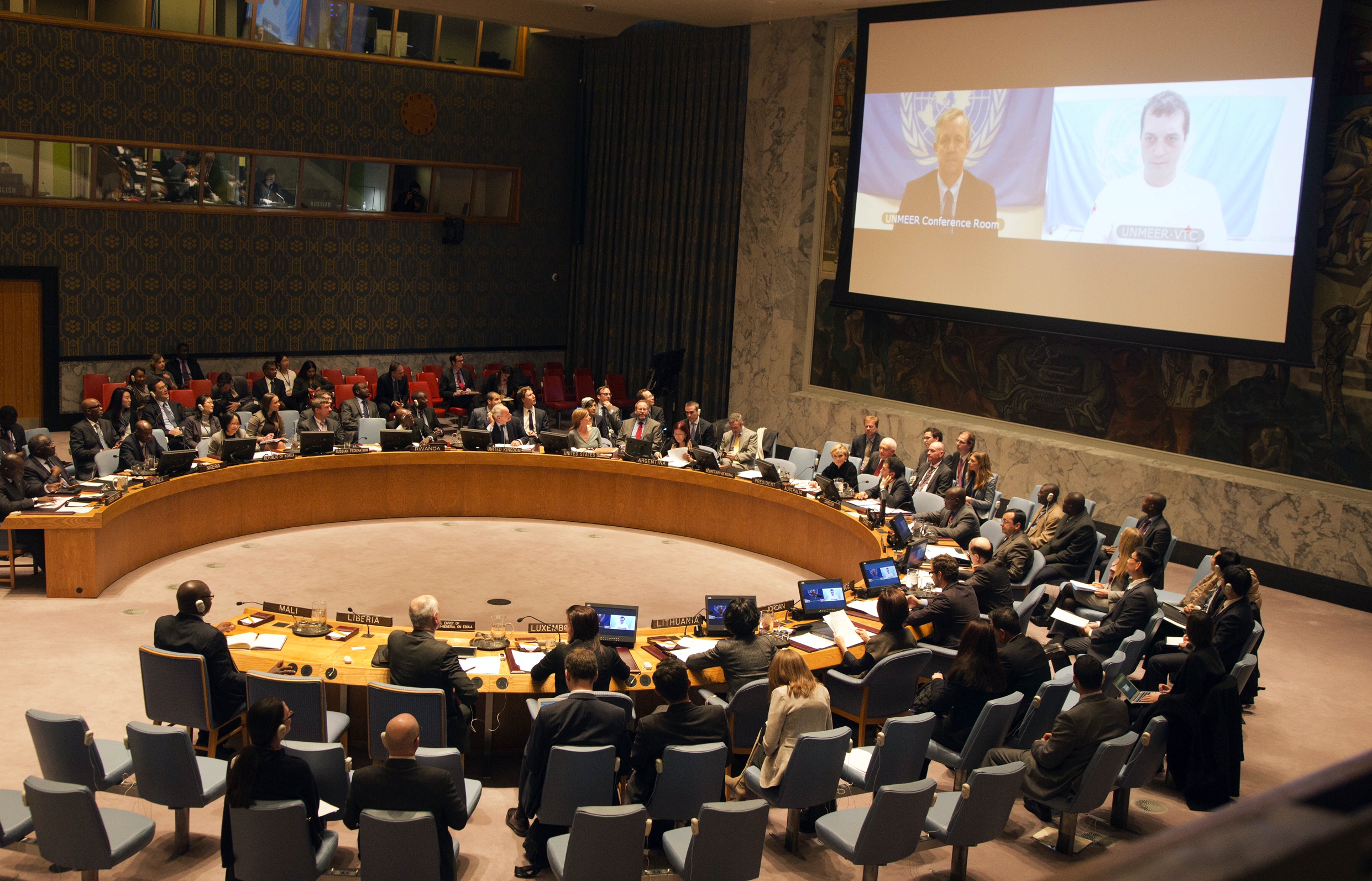 Foreign Minister Julie Bishop presides at a United Nations Security Council meeting on the global response to the Ebola crisis, 21 November 2014 (DFAT/Trevor Collens)