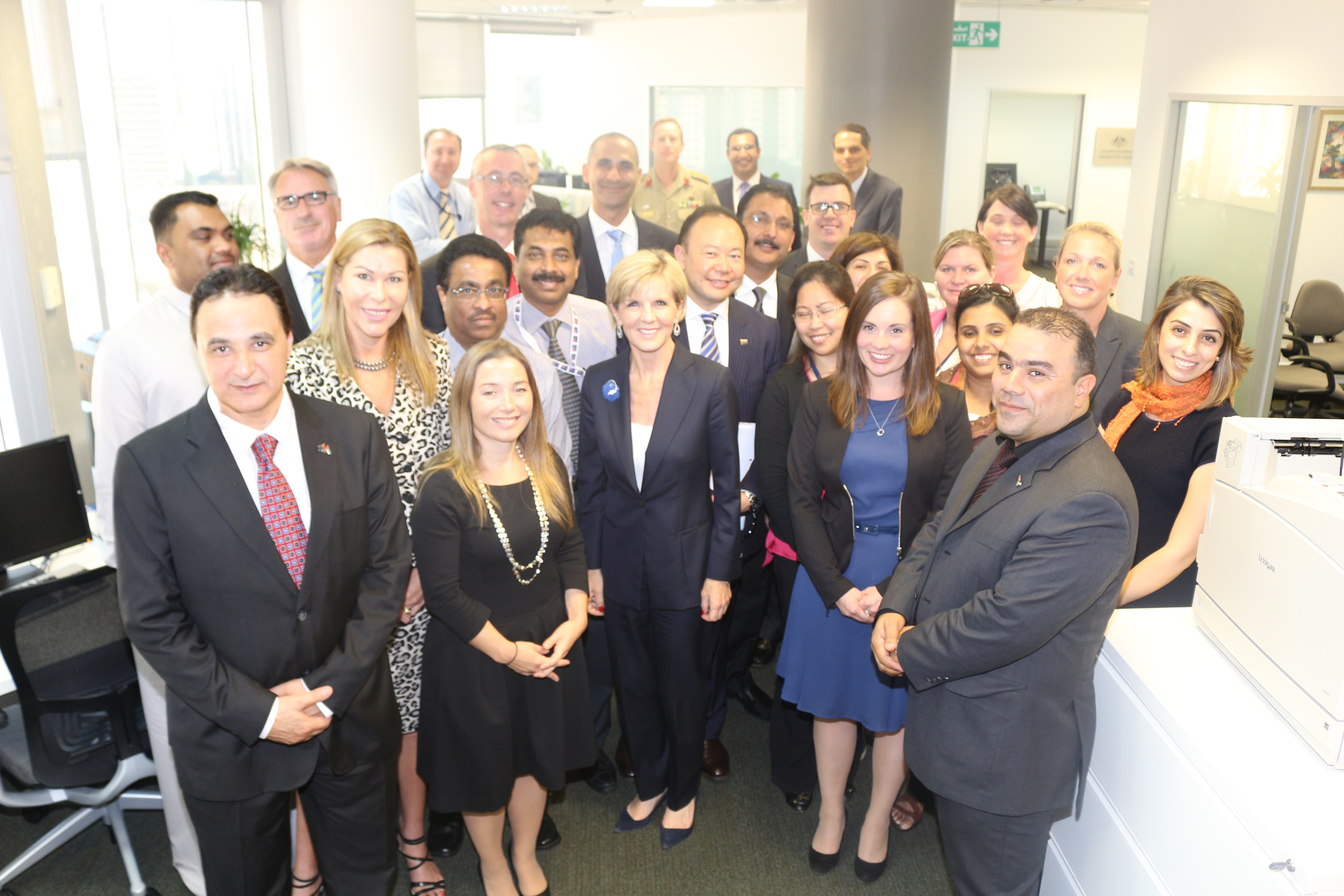 Foreign Minister Julie Bishop meets with Australian Embassy staff, Dubai. 27 January 2015