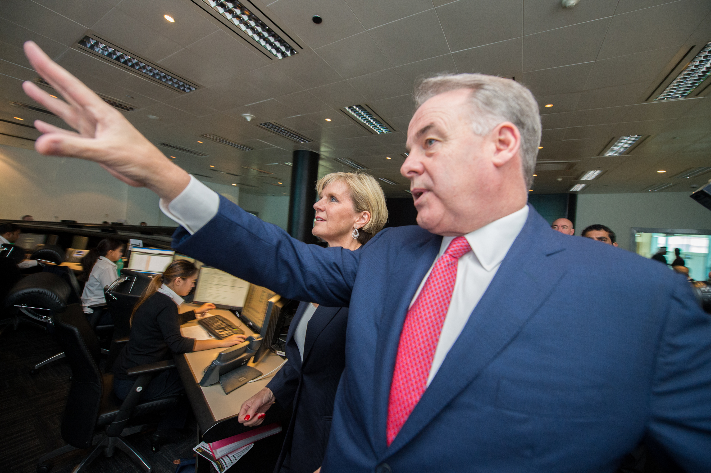 Etihad CEO James Hogan shows Foreign Minister Julie Bishop the Etihad Operations room.