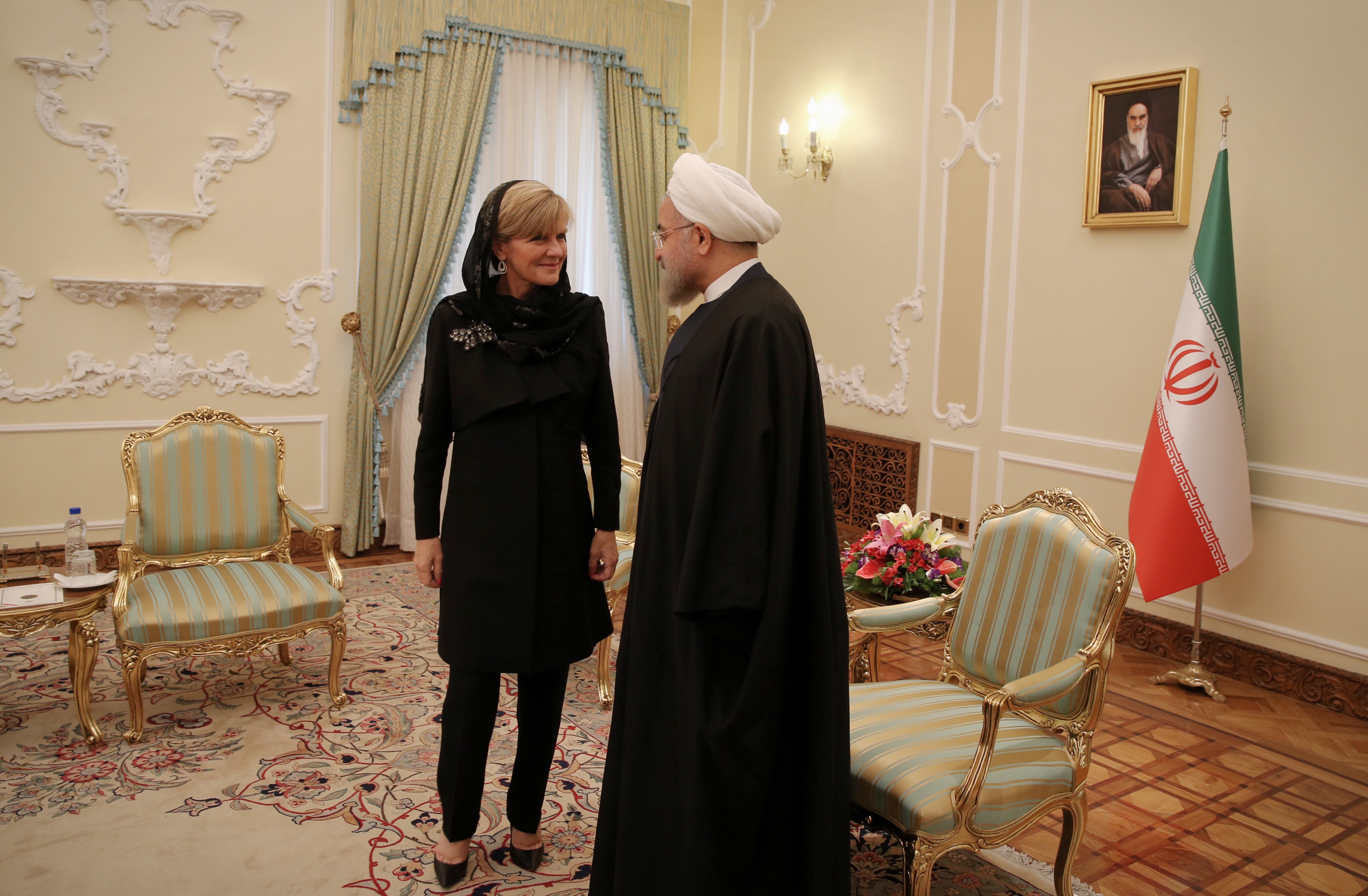 The Hon Julie Bishop MP, Minister for Foreign Affairs, meets with His Excellency Dr Hassan Rouhani, President of the Islamic Republic of Iran, on 18 April.
