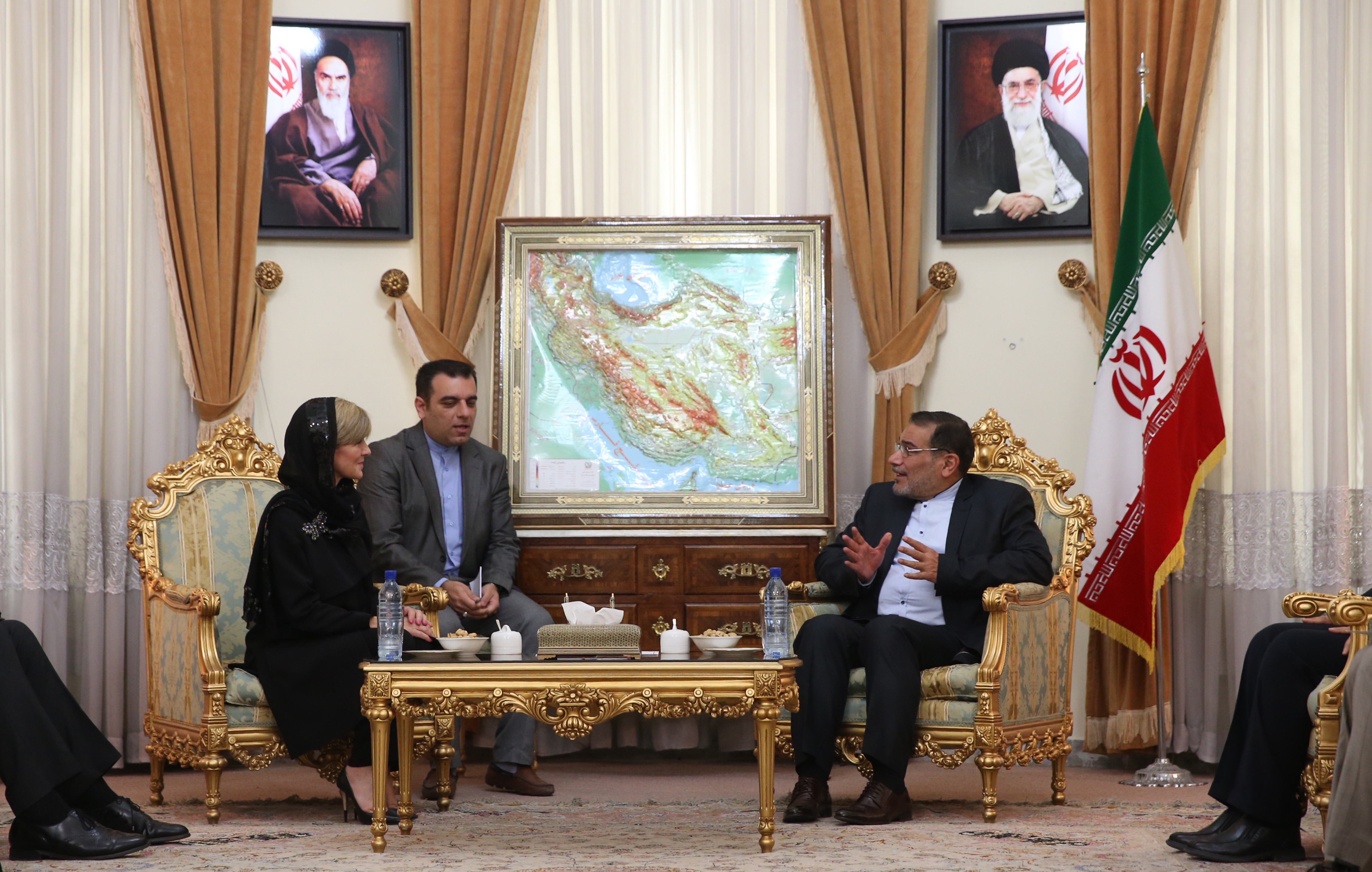 The Hon Julie Bishop, Minister for Foreign Affairs, meets with Rear Admiral (Ret’d) Al Shamkhani, Secretary, Supreme National Security Council, Islamic Republic of Iran, on 18 April 2015.