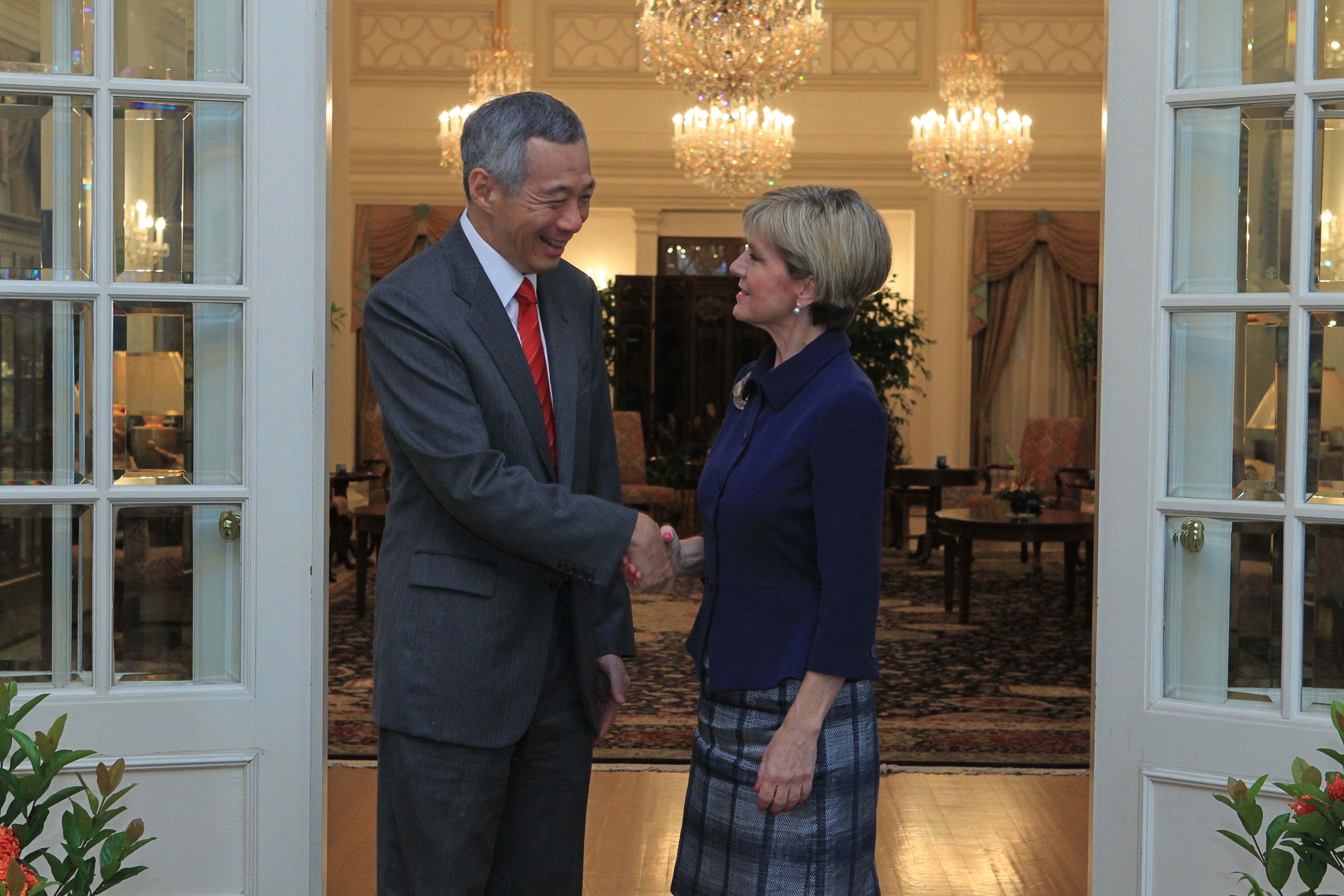 Australia's Foreign Minister Julie Bishop meets with Singapore's Prime Minister Lee Hsien Loong at Istana in Singapore. 20 May 2015.
