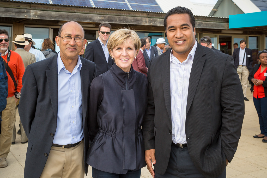 Foreign Minister Julie Bishop with DFAT Secretary Peter Varghese and A/g High Commissioner from Samoa.
