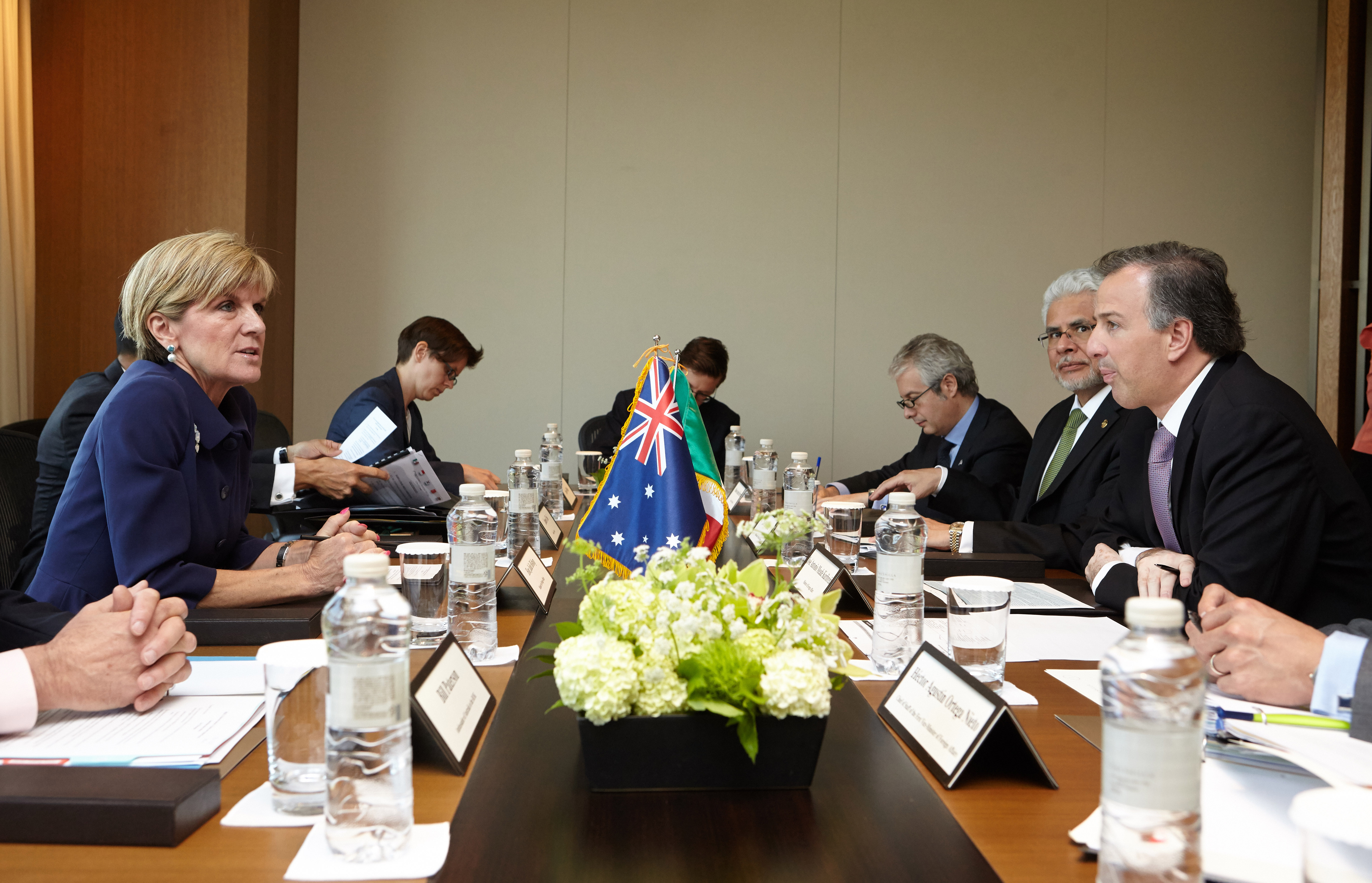 Foreign Minister Bishop holds bilateral discussion with Mexican Foreign Minister José Antonio Meade Kuribreña. 22 May 2015.