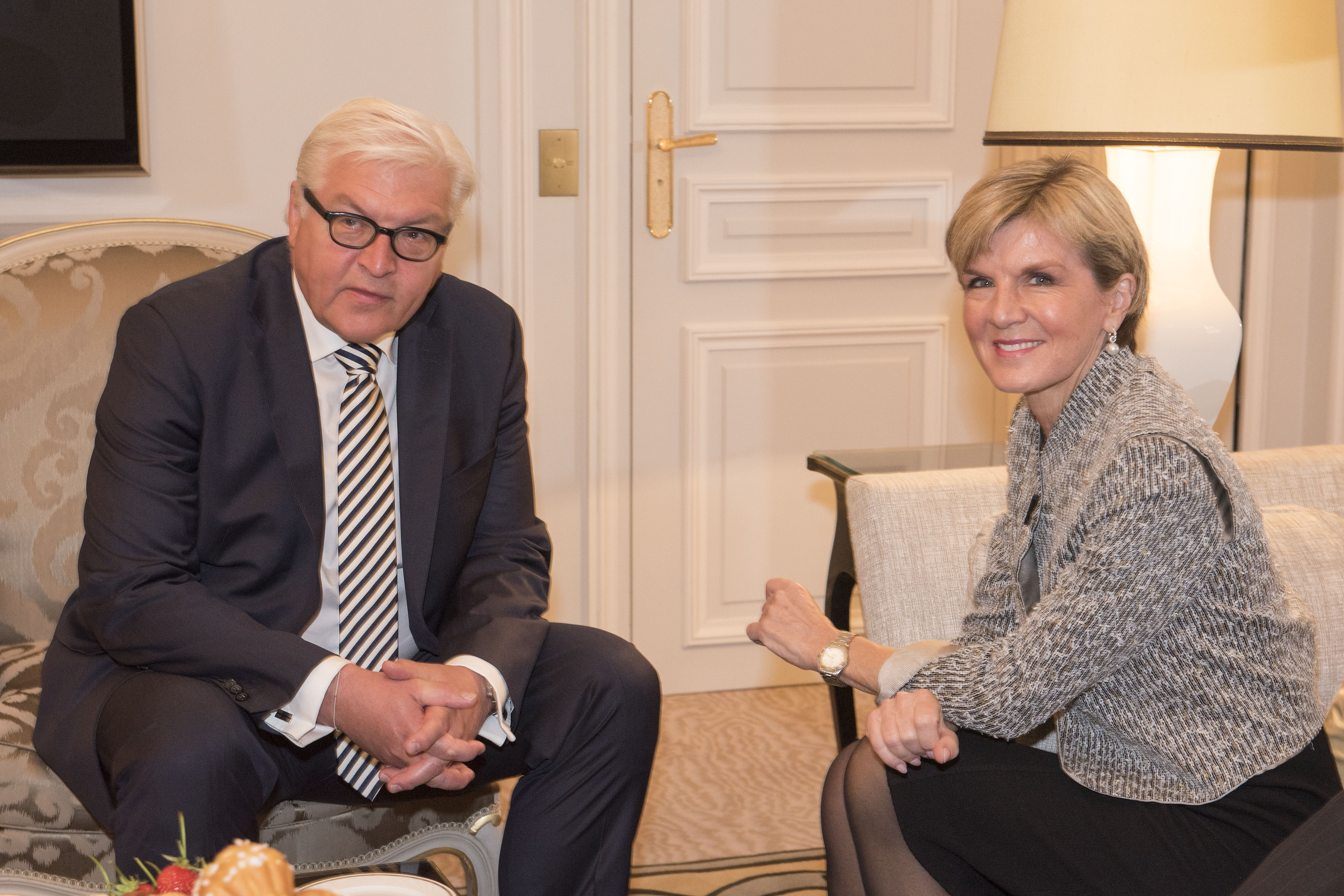 Foreign Minister Julie Bishop and her German counterpart Frank Walter Steinmeier hold bilateral talks in Paris. 2 June 2015.