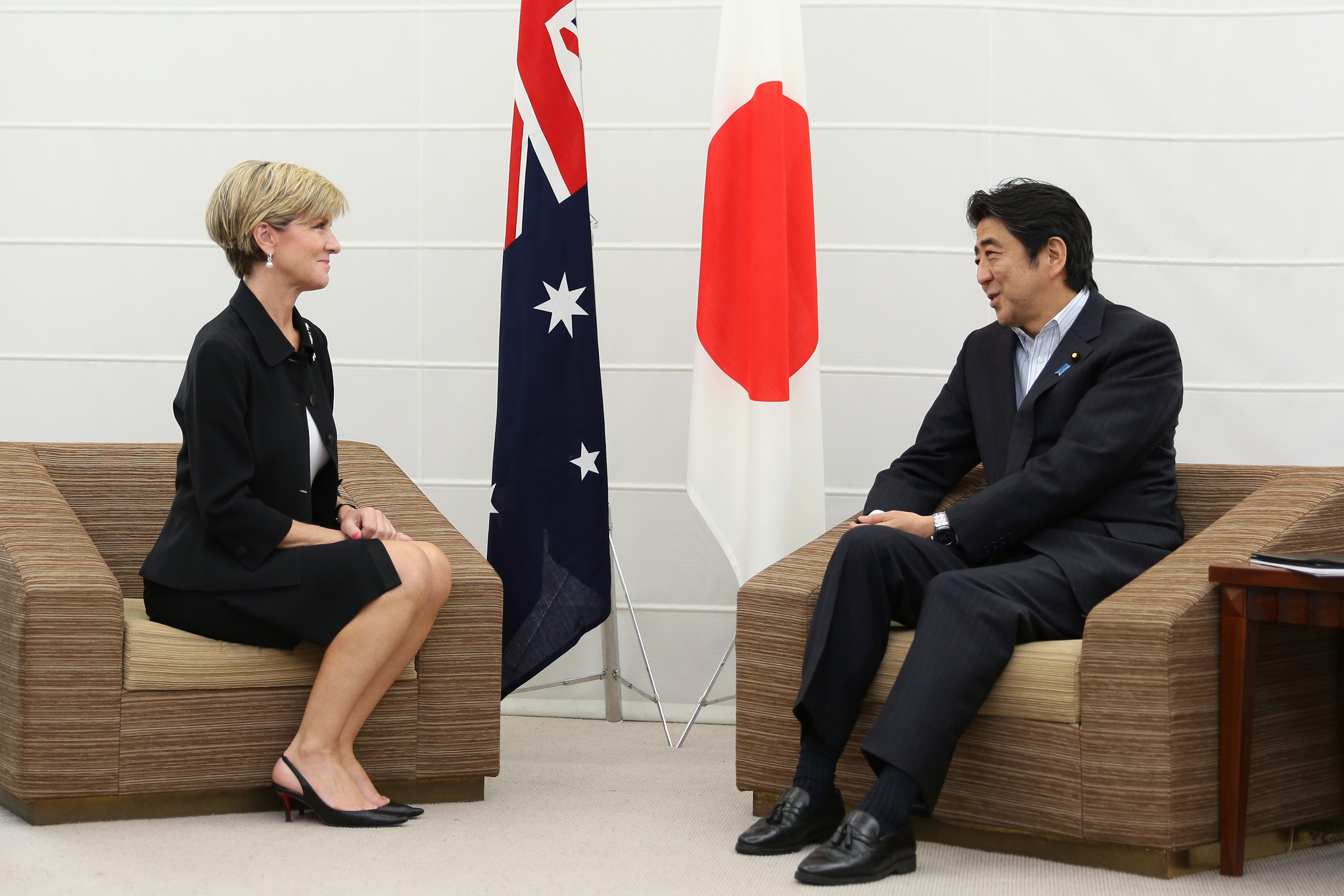 Foreign Minister Julie Bishop meets with Japanese Prime Minister Shinzo Abe at the PALM7 Summit meeting in Iwaki, Japan. 23 May, 2015.