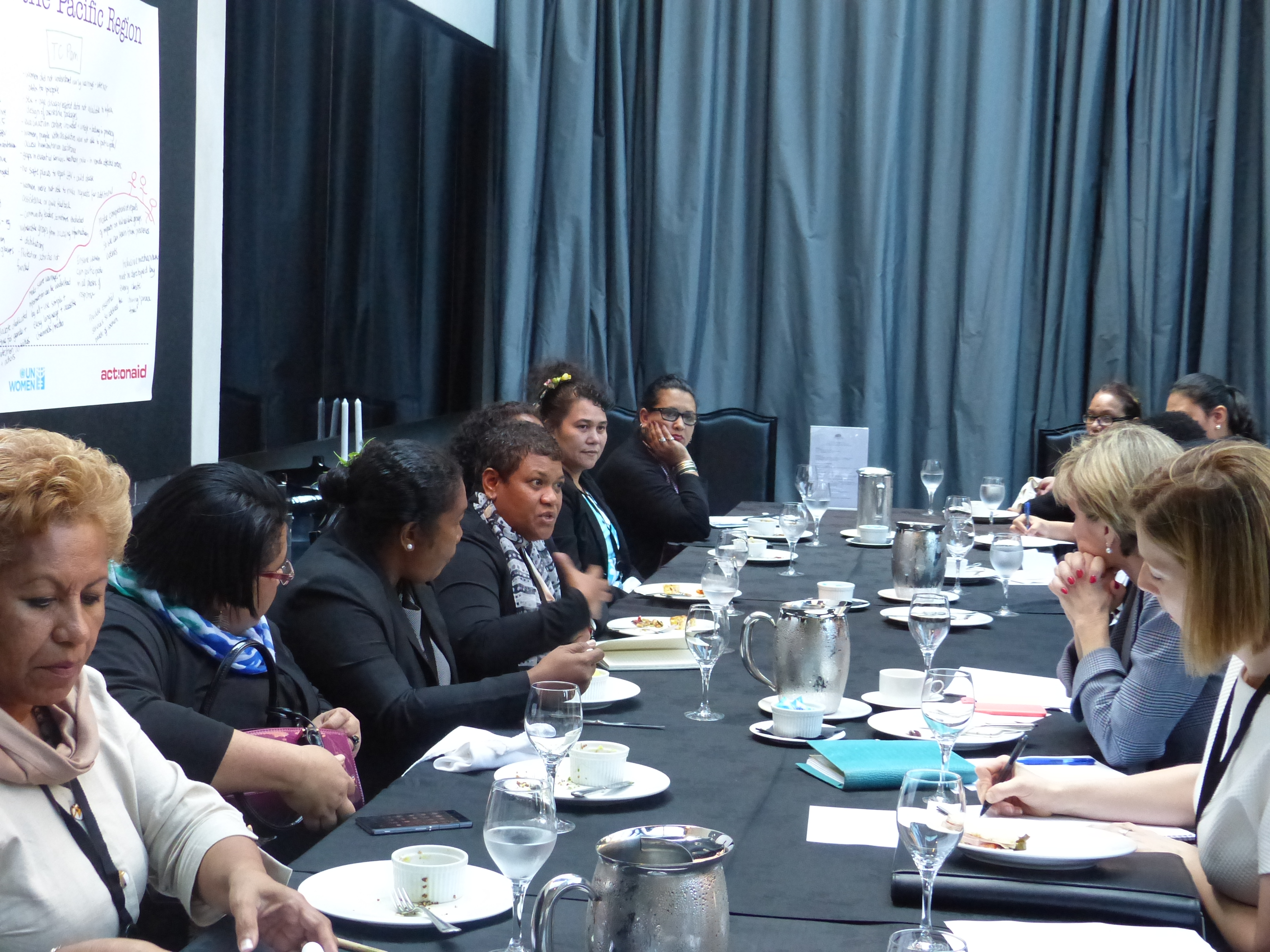 Australia's Foreign Minister Julie Bishop in discussion at the Women's Leadership in Humanitarian Disasters Roundtable in Auckland. 30 June 2015.