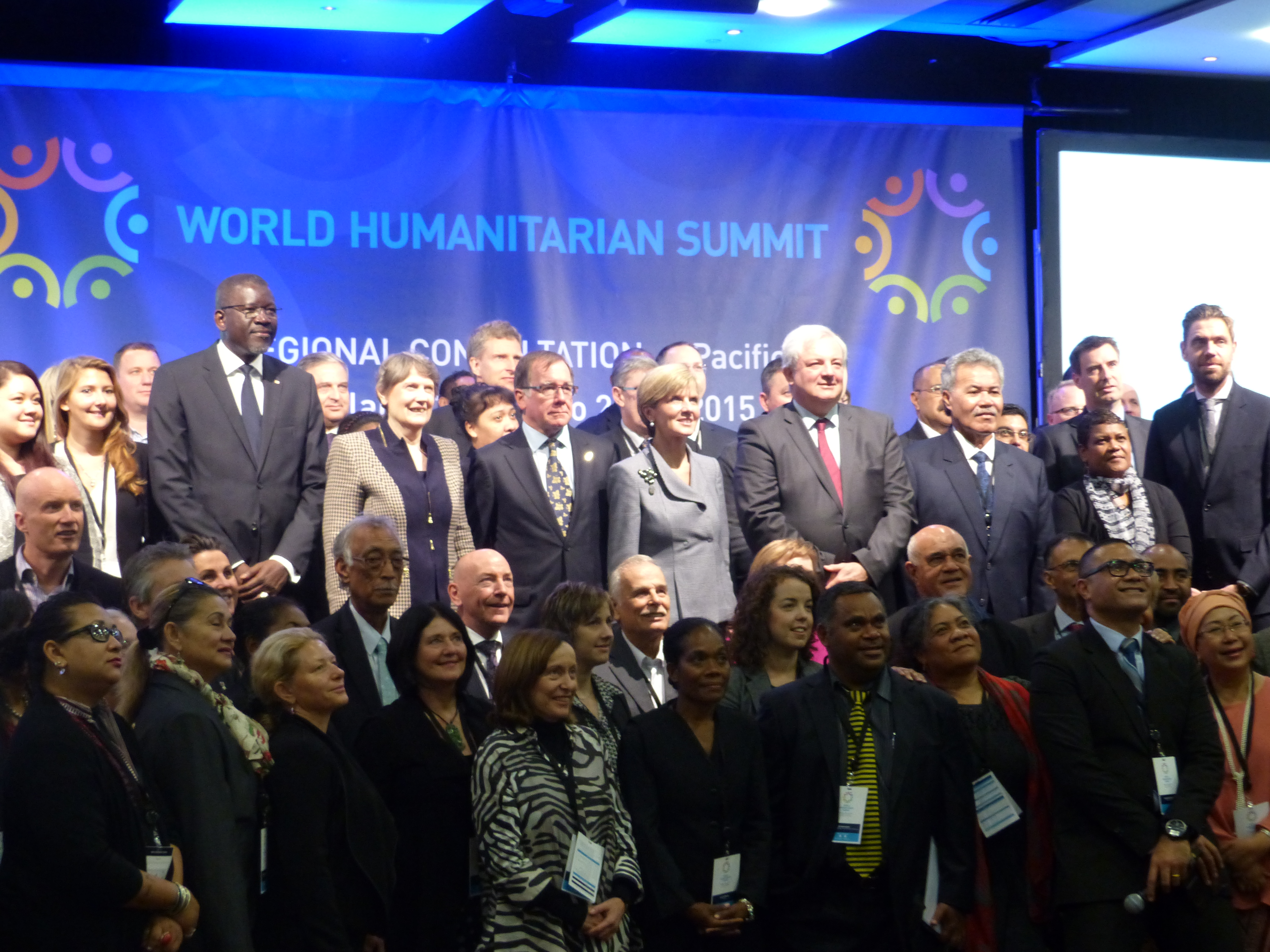 World Humanitarian Summit Pacific Regional Consultation delegates with Elhadj As Sy, Helen Clark, Murray McCully, Julie Bishop, Stephen O'Brien, Prime Minister Sopoaga in Auckland. 30 June 2015.