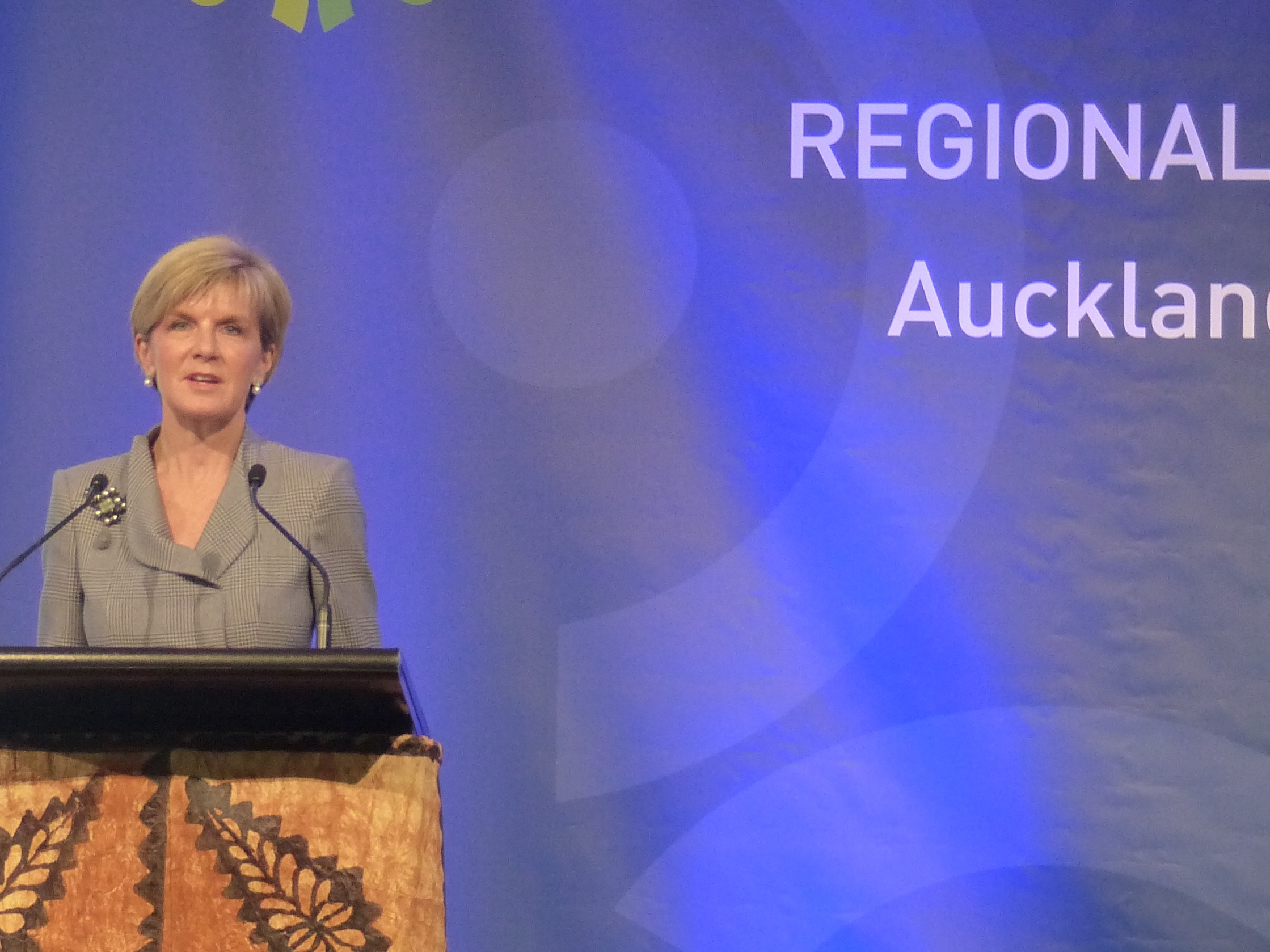 Australia's Foreign Minister Julie Bishop delivers opening remarks at the World Humanitarian Summit Pacific Regional Consultations in Auckland. 30 June 2015.