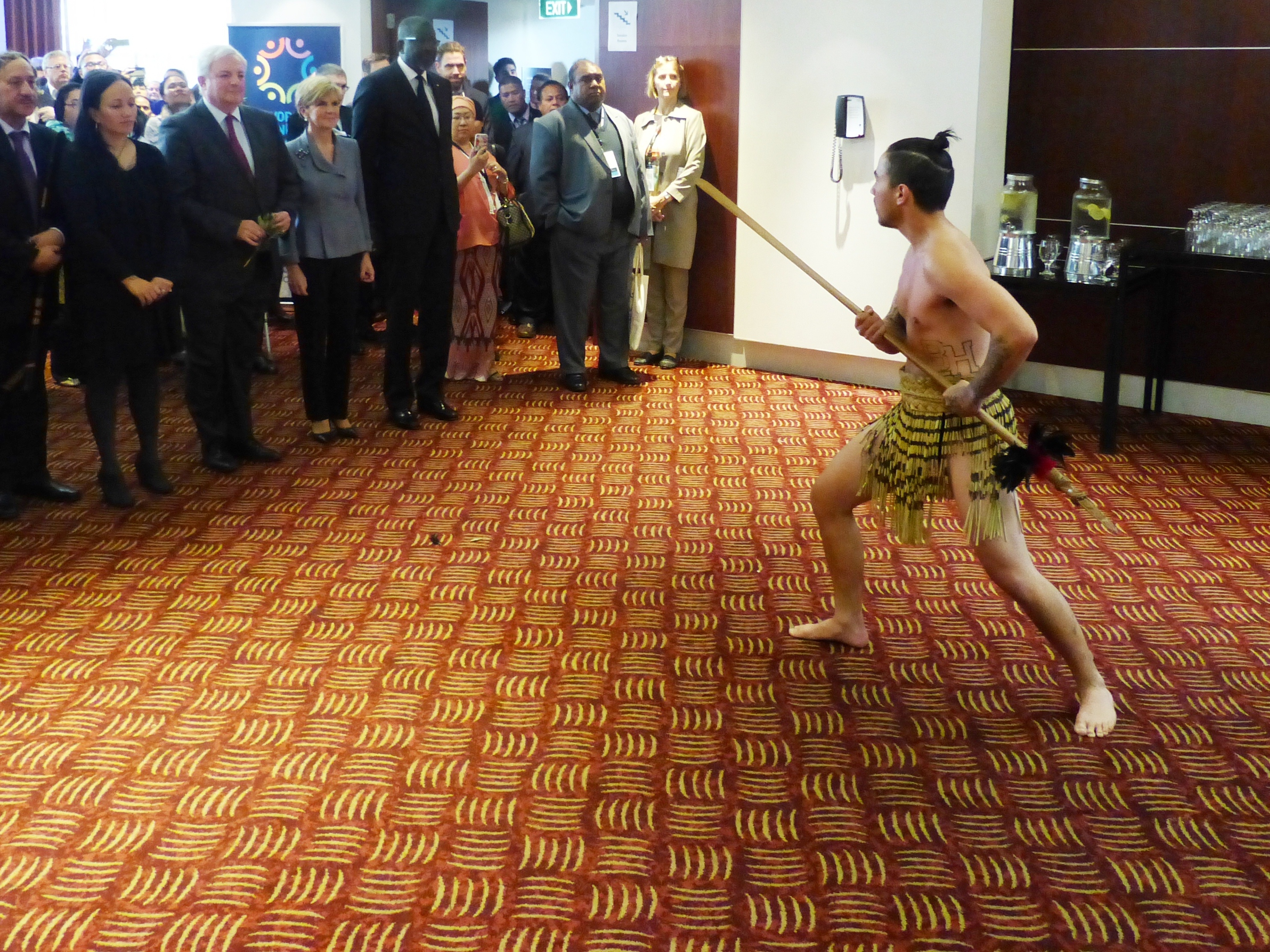 Australia's Foreign Minister Julie Bishop and dignitaries as they enter the Pōwhiri (Welcoming ceremony) of the World Humanitarian Summit Pacific Regional Consultation in Auckland. 30 June 2015.