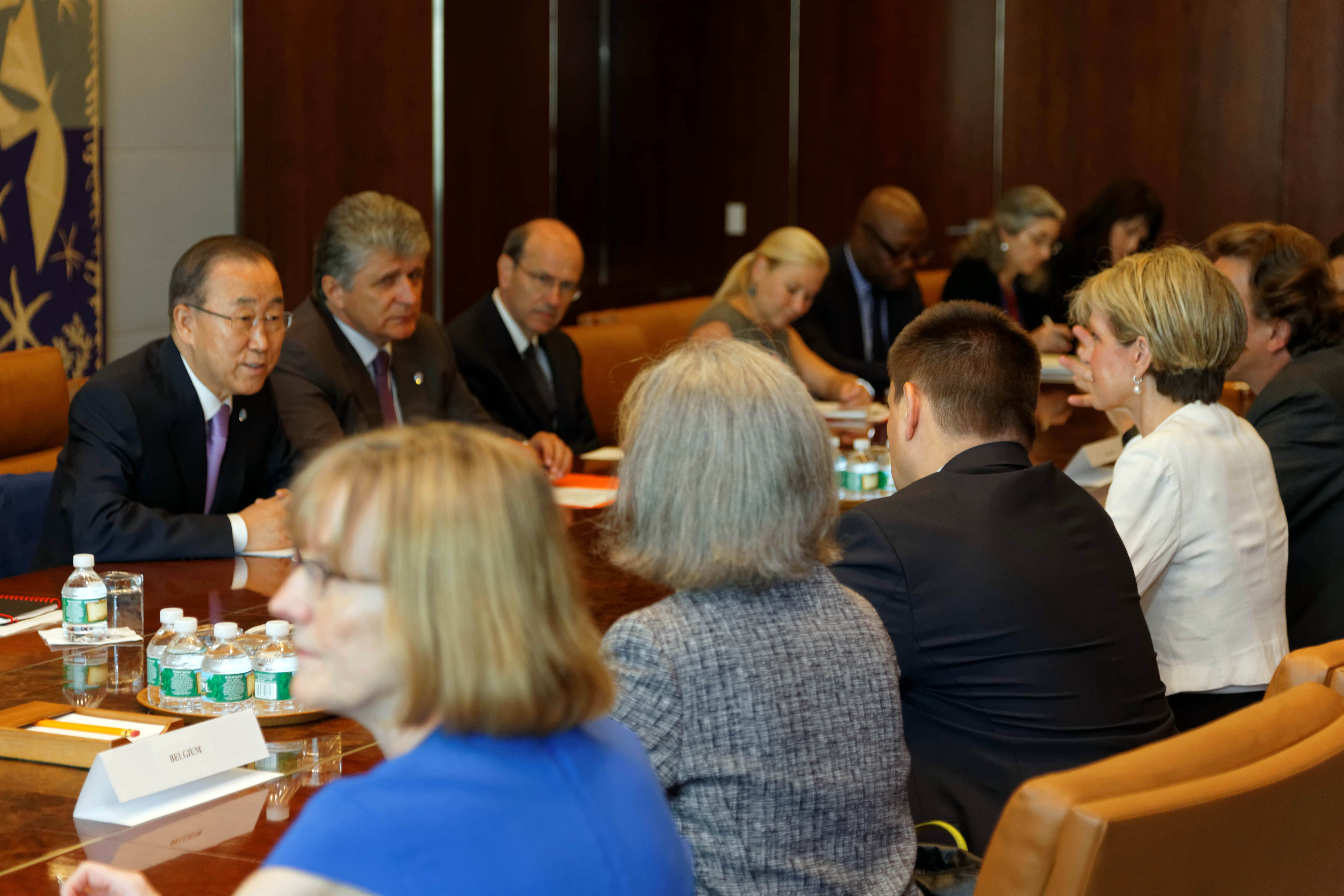 Visit to New York by Minister for Foreign Affairs Julie Bishop, 29 July 2015. Minister Julie Bishop and representatives of Malaysia Belgium, Ukraine, and the Netherlands, members of the Joint Investigative Team (JIT) Minister's Caucus into the downing of Malaysia Airlines flight MH17 meet with UN Secretary General Ban Ki-moon at UN Headquarters. photo by Trevor Collens