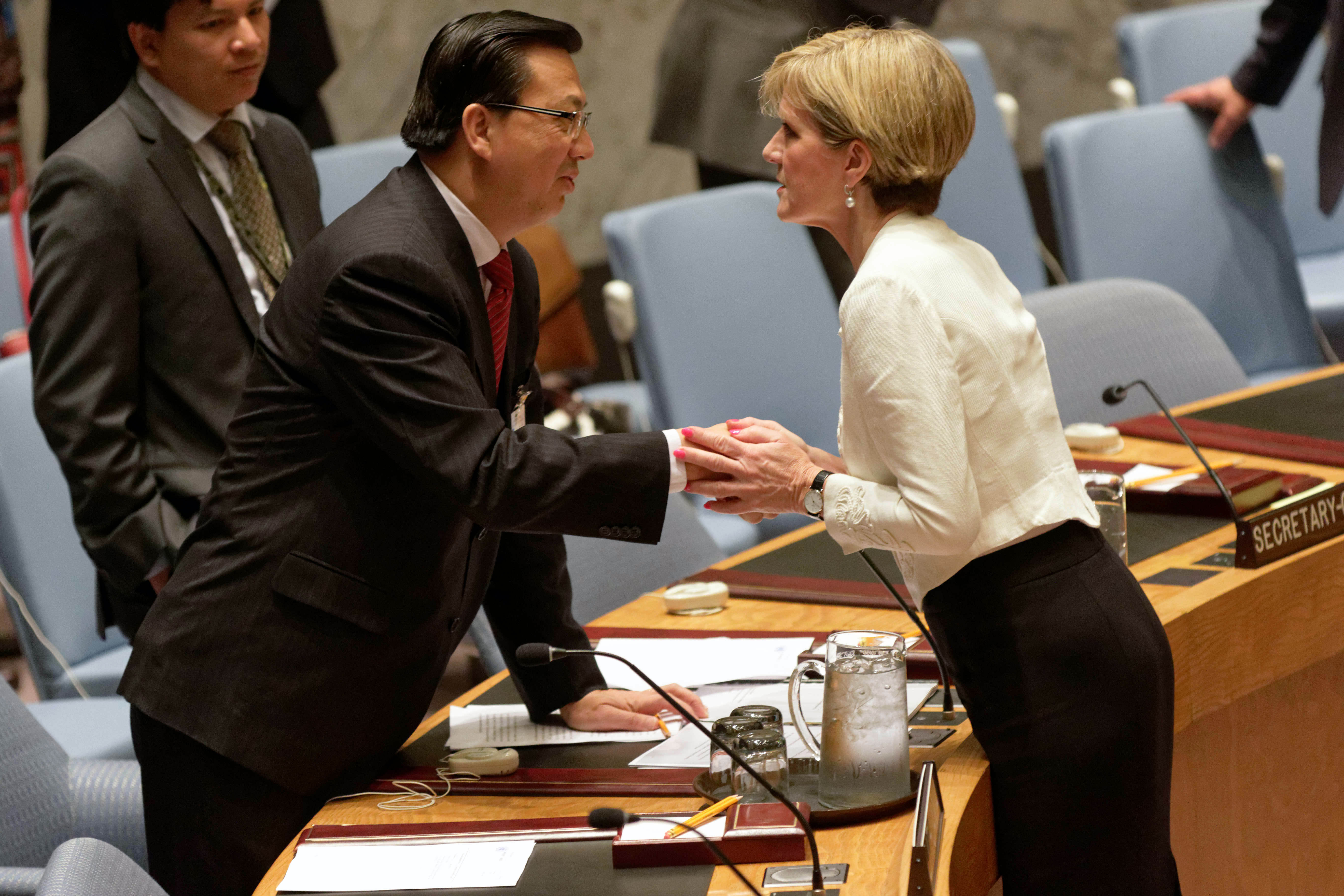 Visit to New York by Minister for Foreign Affairs Julie Bishop, 29 July 2015. Minister Julie Bishop in the UN Security Council where she delivered a statement regarding Malaysia Airline flight MH17 downed over Ukraine. photo by Trevor Collens
