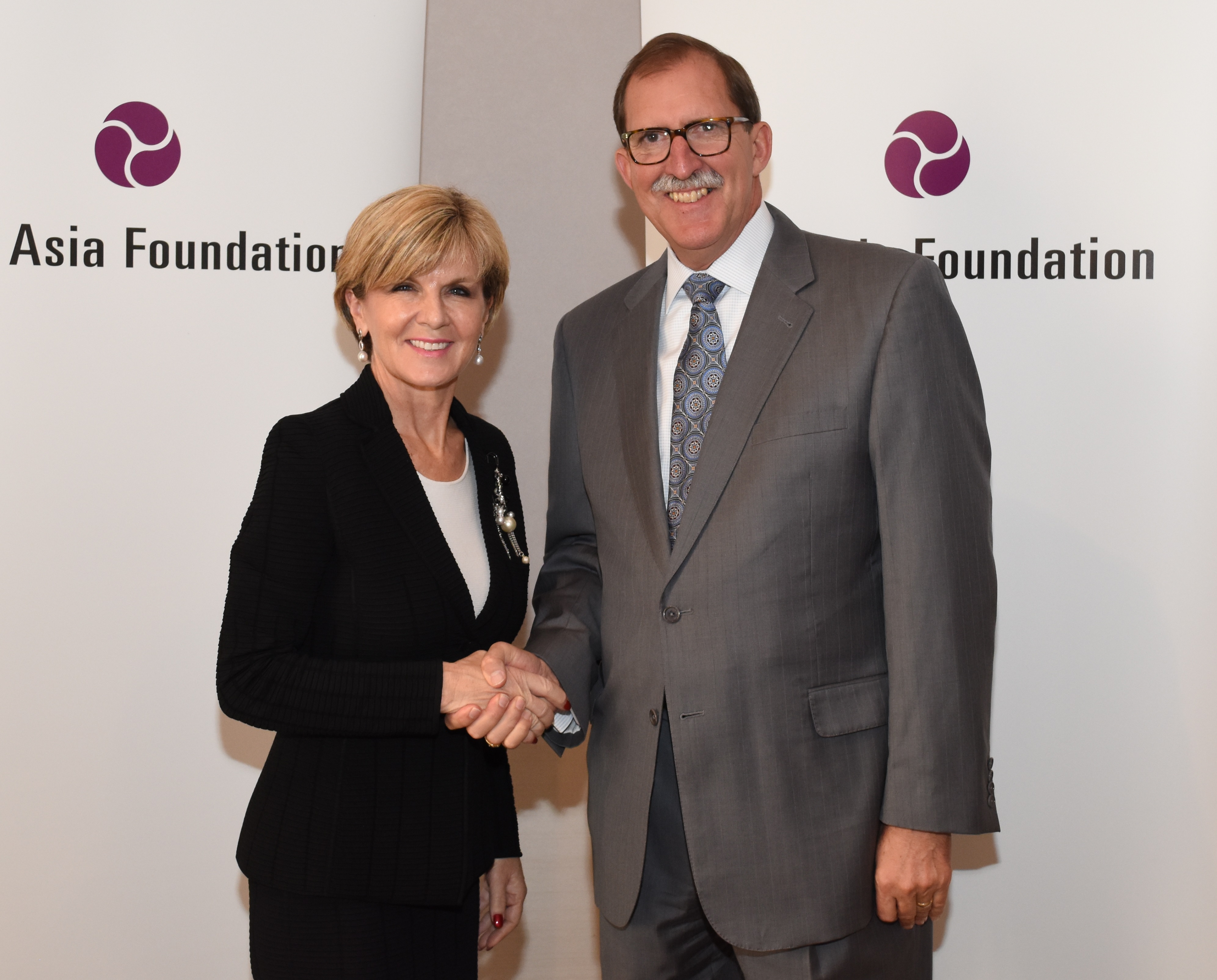 Foreign Minister Julie Bishop meets with David Arnold, President, The Asia Foundation in San Francisco on 9 October 2015.