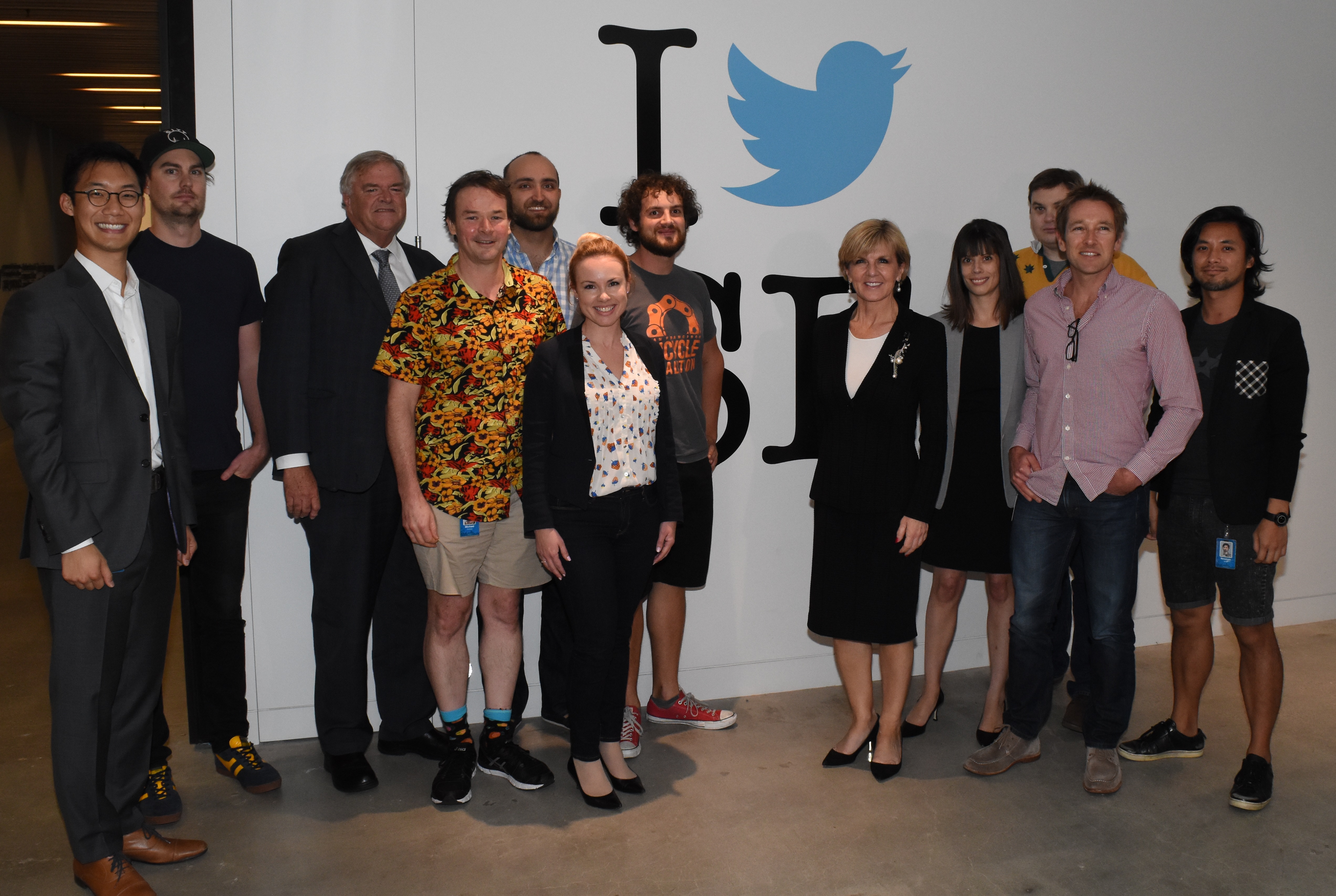 Foreign Minister Julie Bishop with Australia’s Ambassador to the USA, Kim Beazley meet with staff at Twitter Headquarters in San Francisco on 9 October 2015.