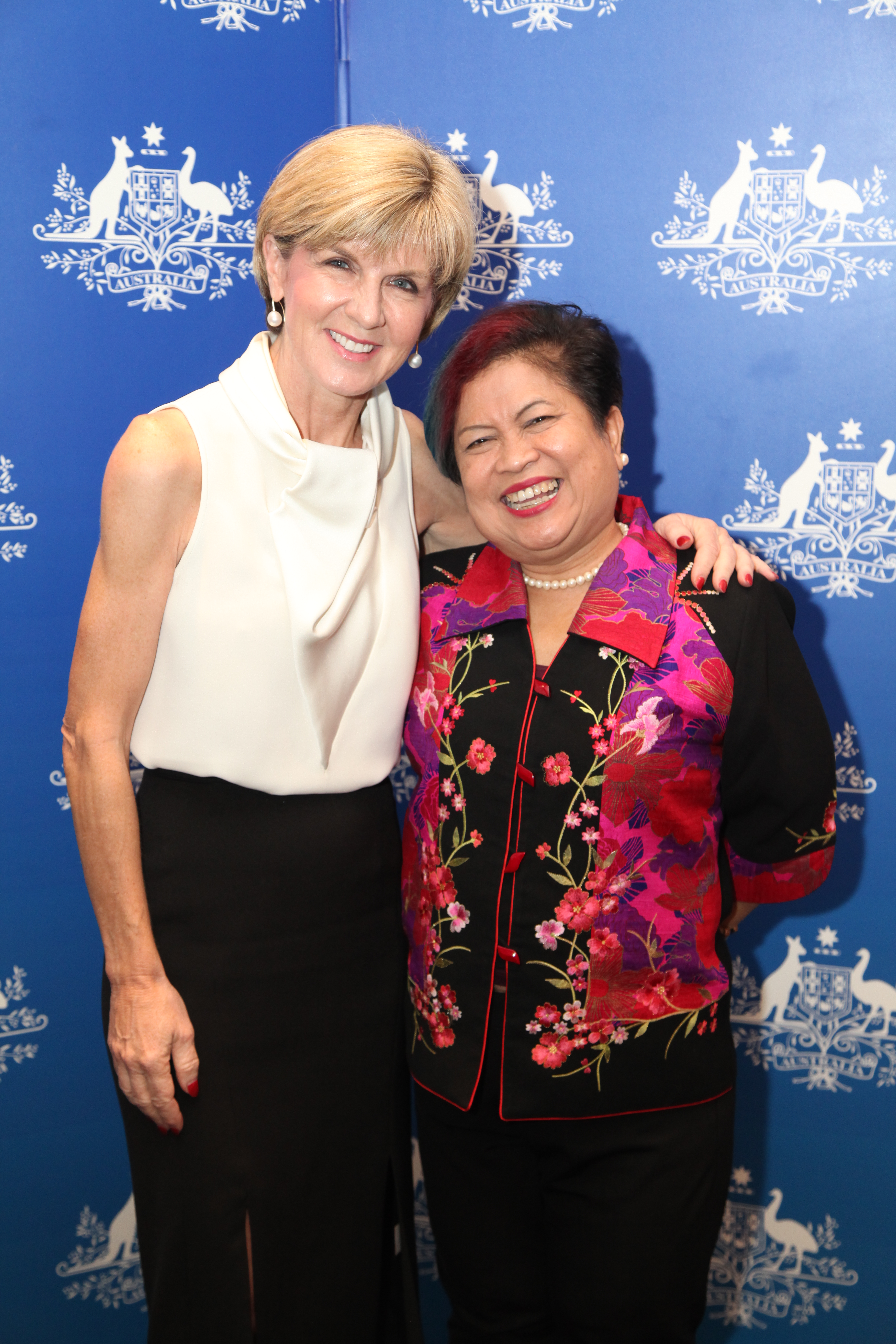 Foreign Minister Bishop with Philippine Department of Social Welfare and Development Secretary Corazón "Dinky" Solíman in Manila, 18 November 2015. Photo by Mark Alvarez.