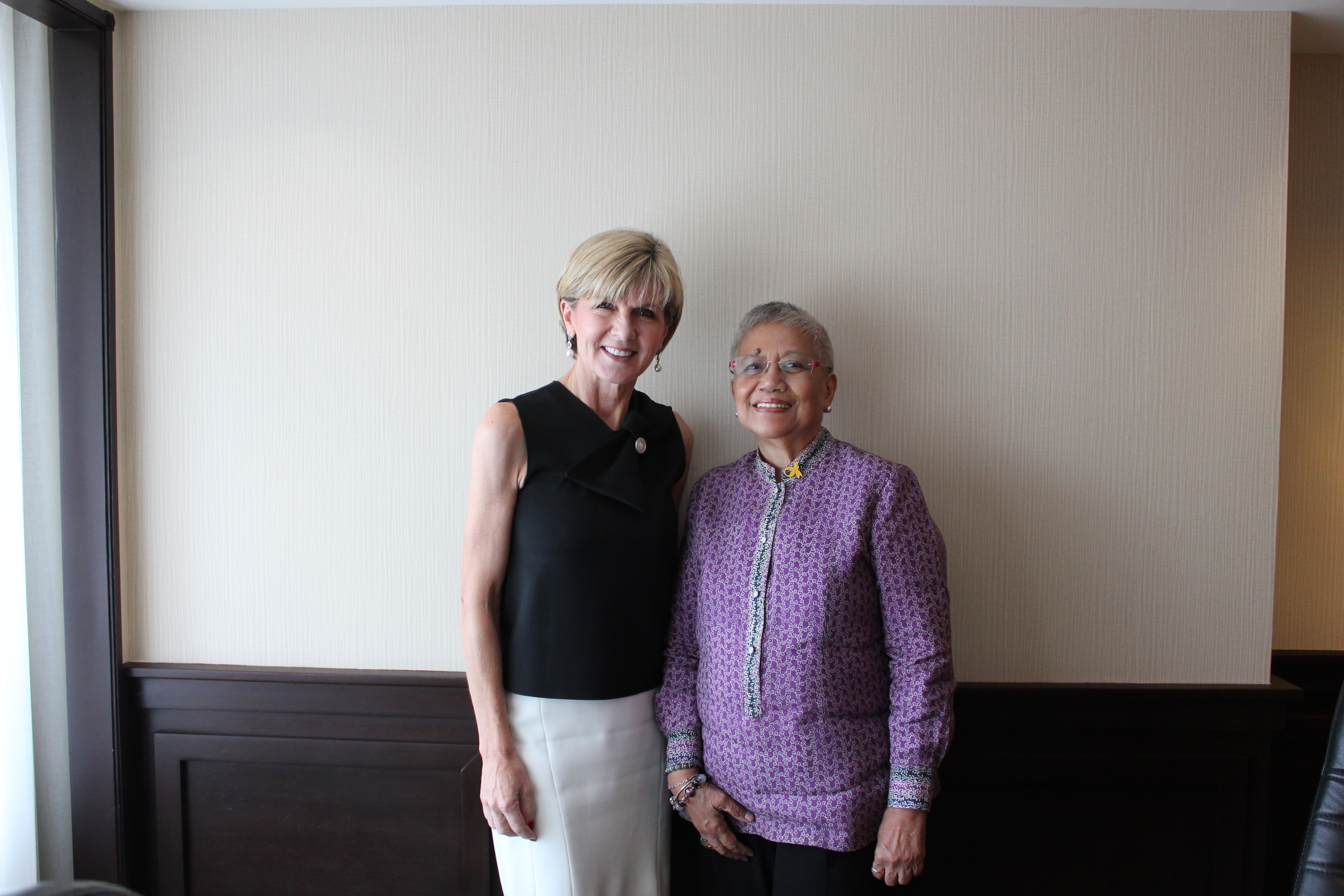 Foreign Minister Bishop meets Adviser to the Philippine President on the Peace Process Secretary Teresita Quintos Deles in Manila, 17 November 2015. Photo by JP Agcaoili/DFAT.