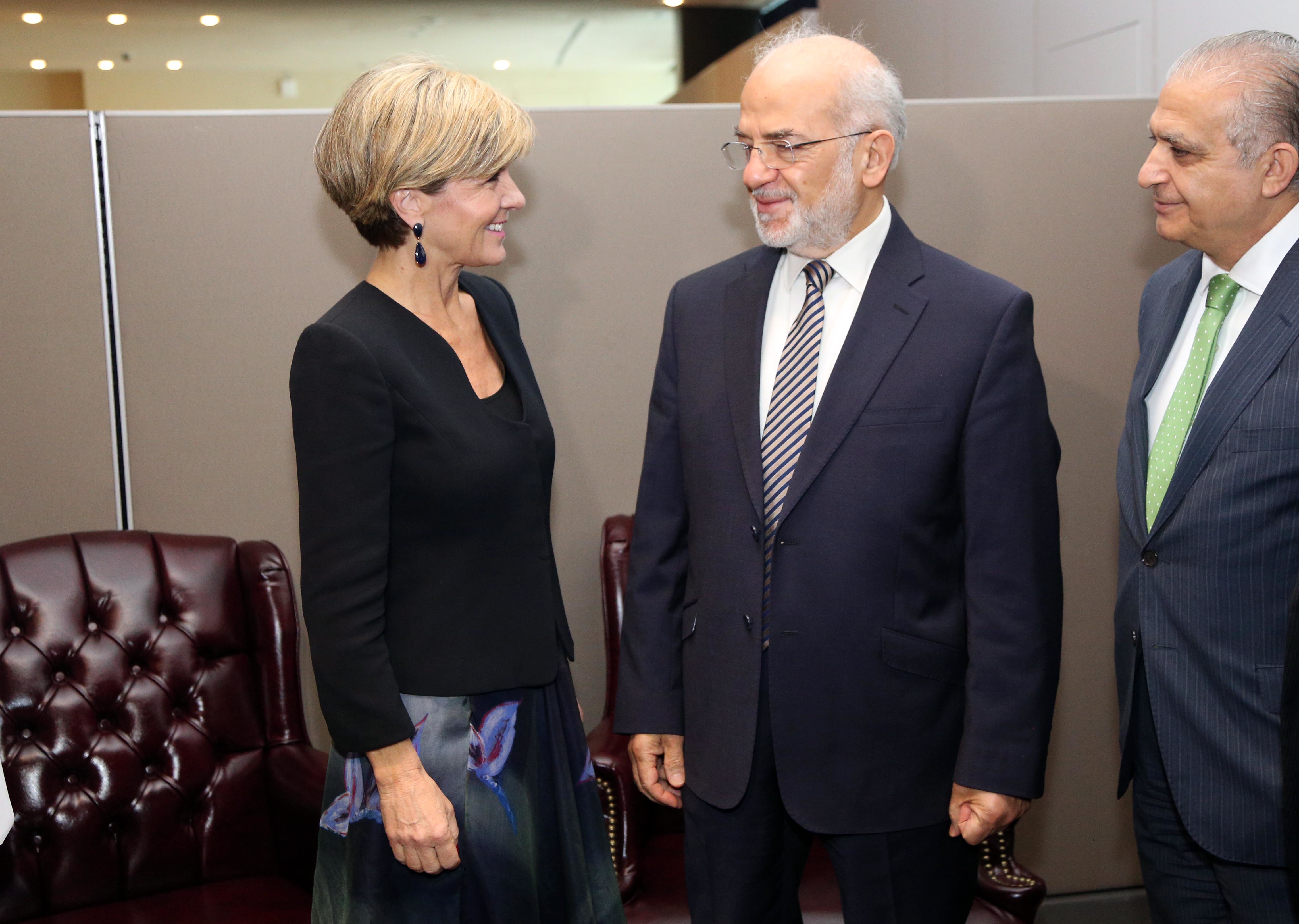 Australian Foreign Minister Julie Bishop meets with H.E. Mr Ibrahim al-Jaafari, Foreign Minister of Iraq at UN Headquarters in New York, Saturday September 26, 2015. photo by Trevor Collens/DFAT