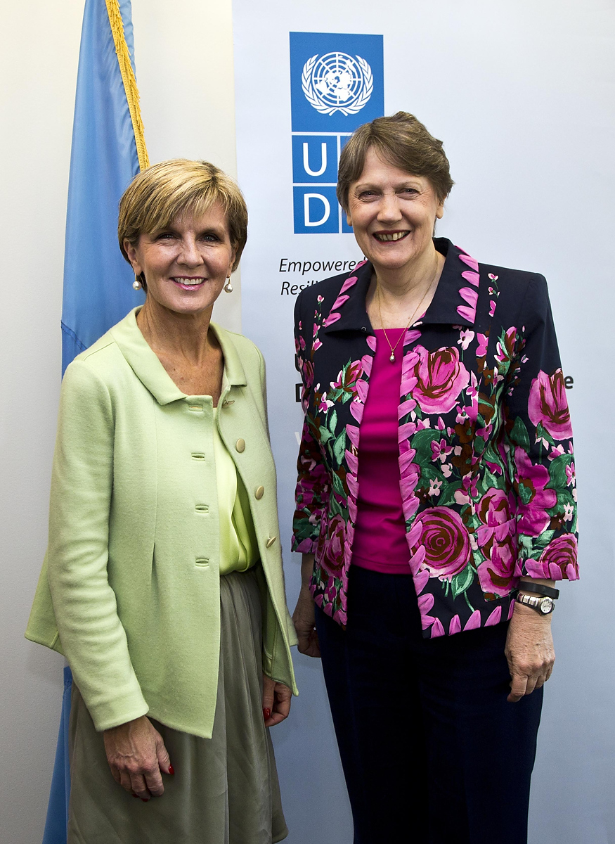 Foreign Minister Julie Bishop meets with UNDP Adminstrator Helen Clark in New York, Thursday 24 Sept, 2015. photo by Trevor Collens