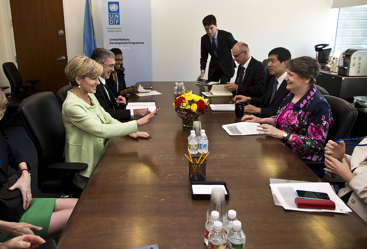 Foreign Minister Julie Bishop meets with UNDP Adminstrator Helen Clark in New York, Thursday 24 Sept, 2015. photo by Trevor Collens