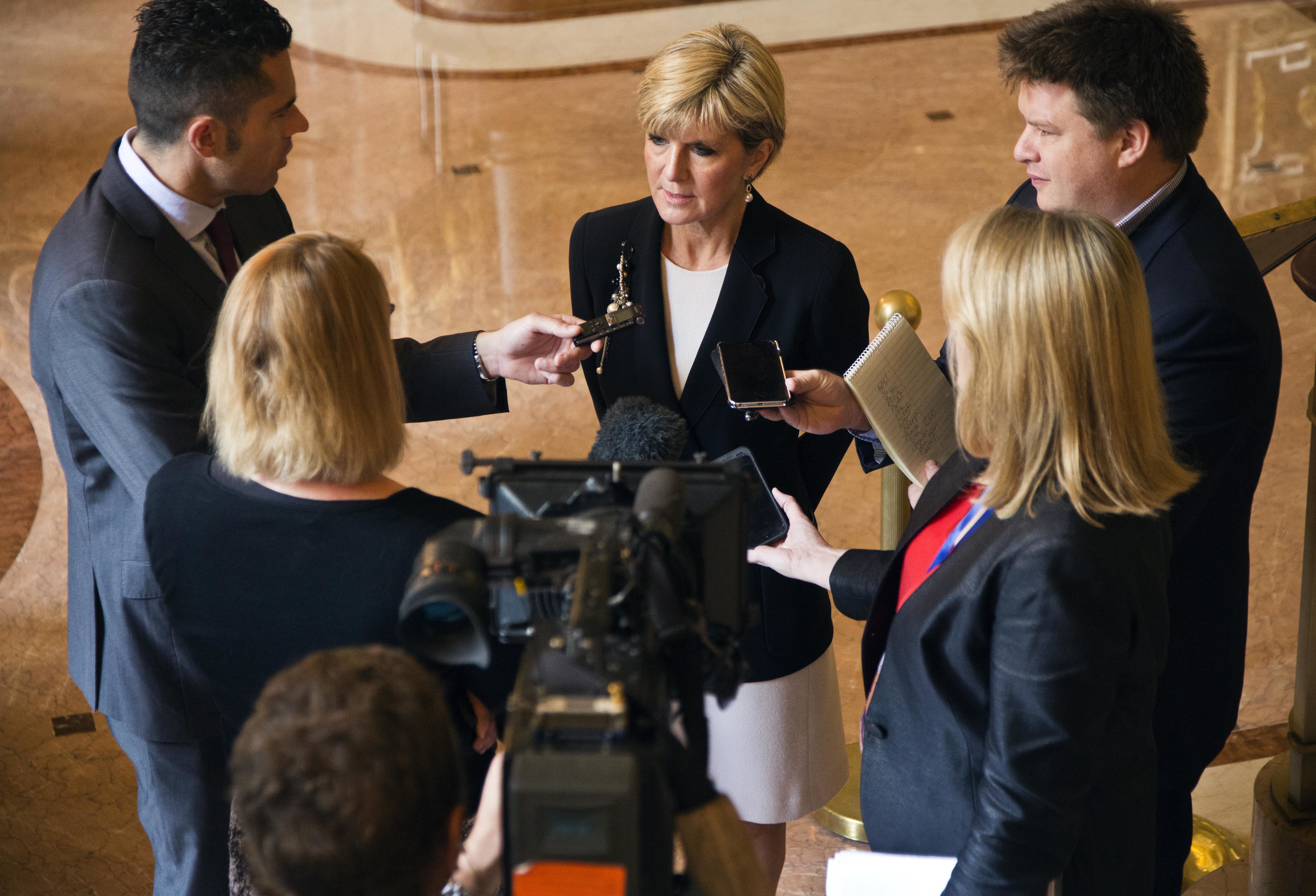 Australian Foreign Minister Julie Bishop speaks to the media after a Global Counter Terrorism Forum Ministerial meeting in New York, Sunday September 27, 2015. photo by Trevor Collens/DFAT