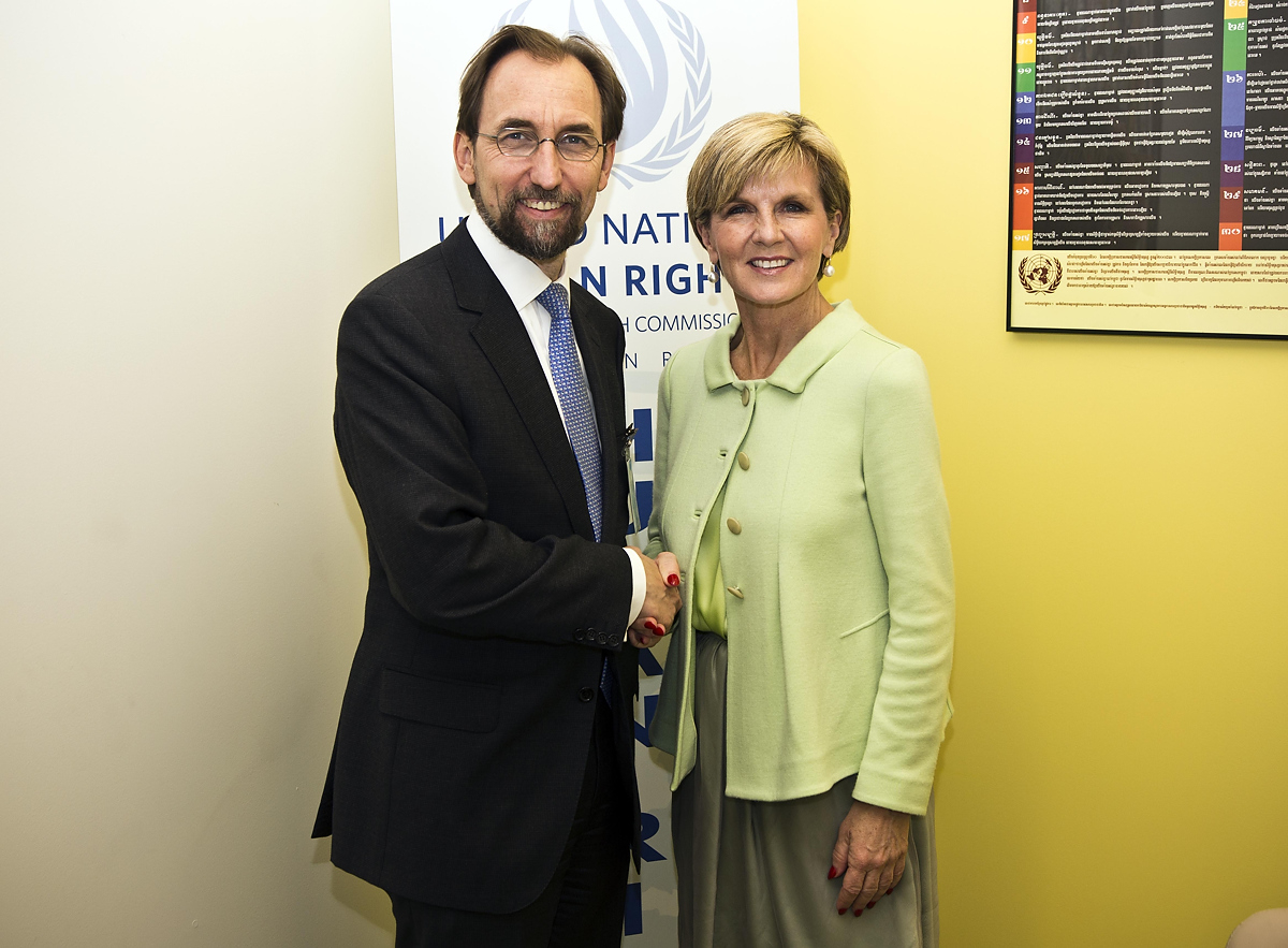 Foreign Minister Julie Bishop meets with Zeid Ra'ad Al Hussein, UN Commissioner for Human Rights at UN Headquarters in New York, Thursday 24 Sept, 2015. photo by Trevor Collens