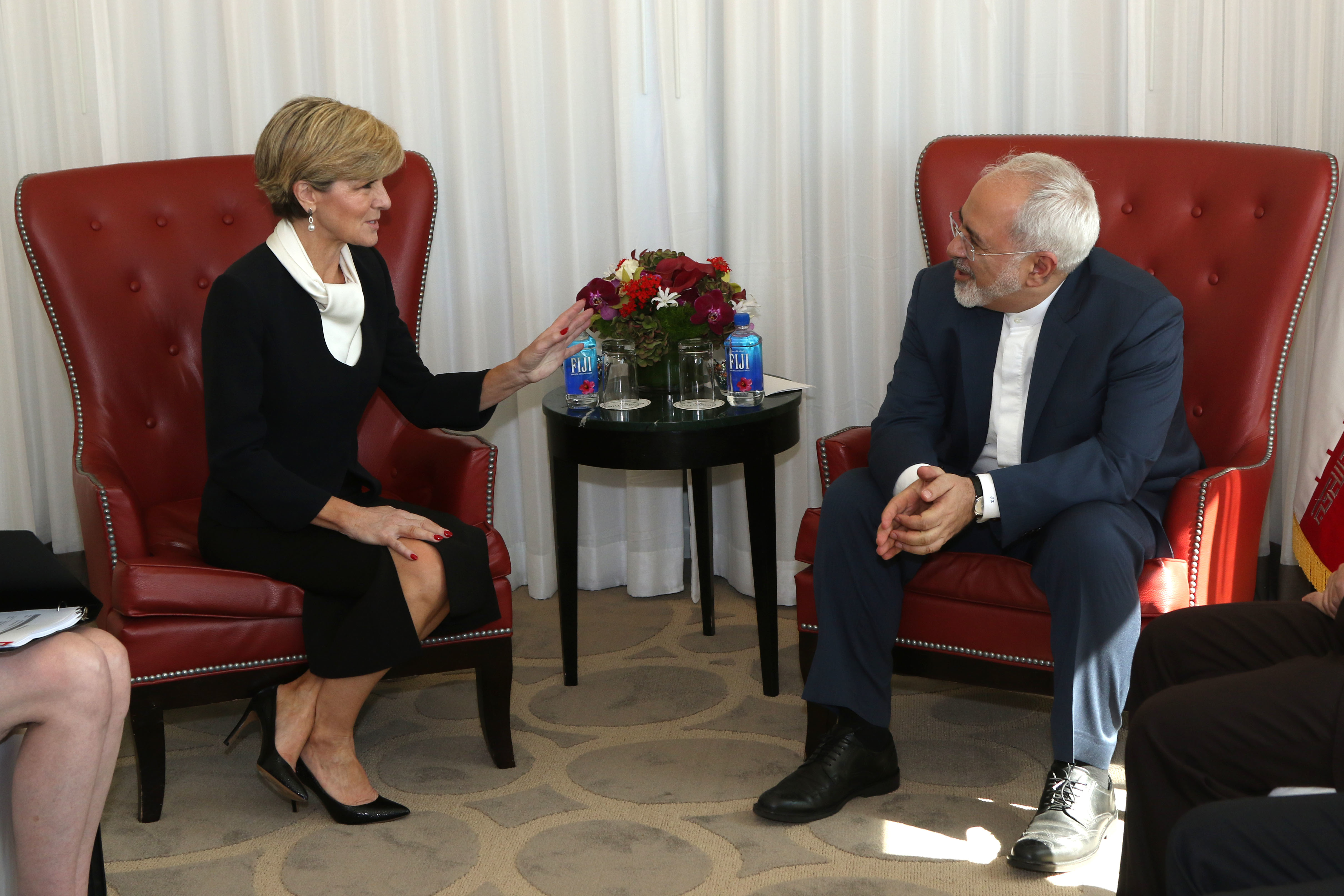 Australian Minister for Foreign Affairs Julie Bishop meets with Iranian Foreign Minister Mohammad Javad Zarif in New York. photo by Trevor Collens.