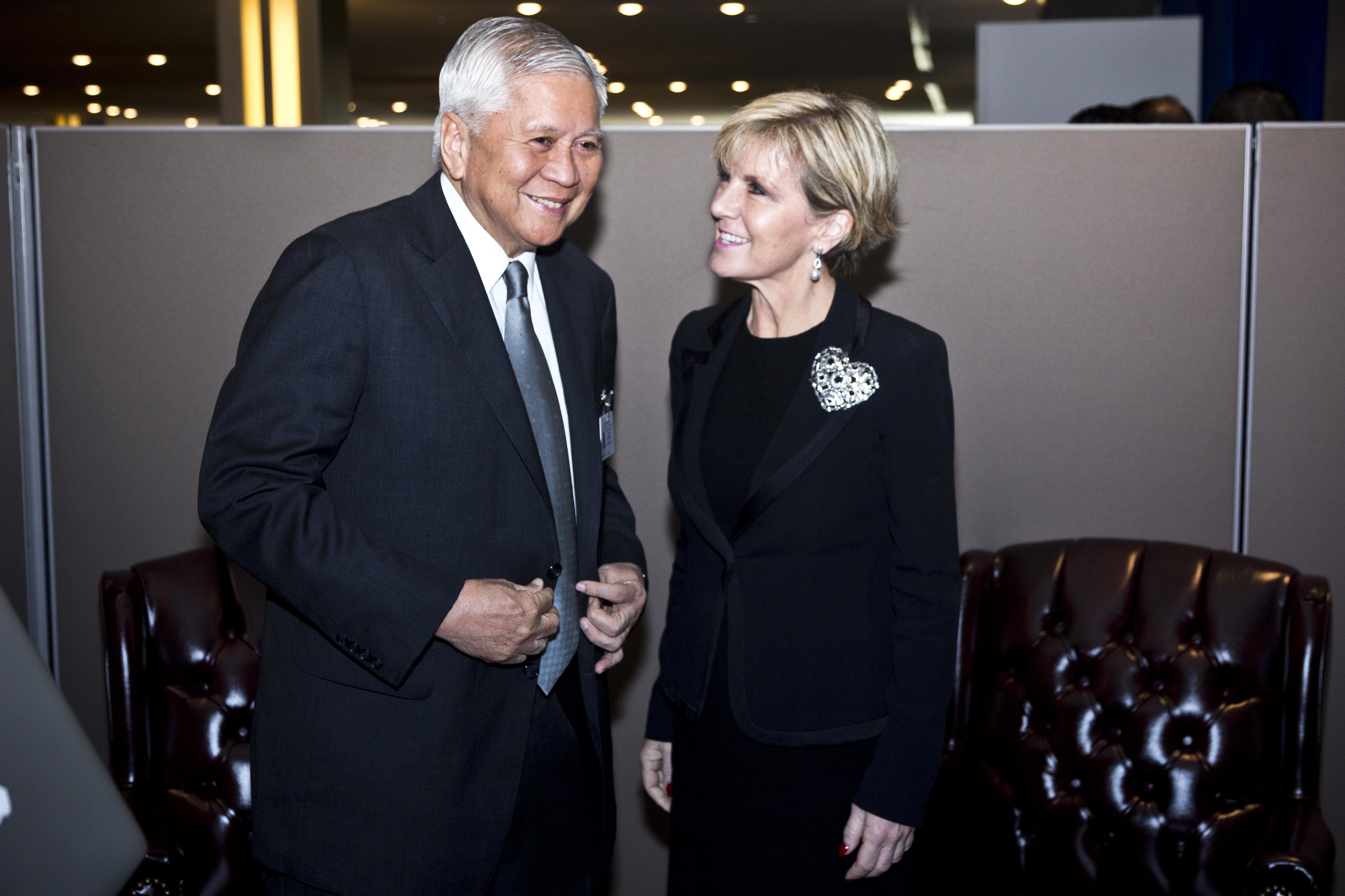 Australian Foreign Minister Julie Bishop meets with Philippines Foreign Minister Albert del Rosario at UN Headquarters in New York, Monday, September 28, 2015. photo by Trevor Collens/DFAT