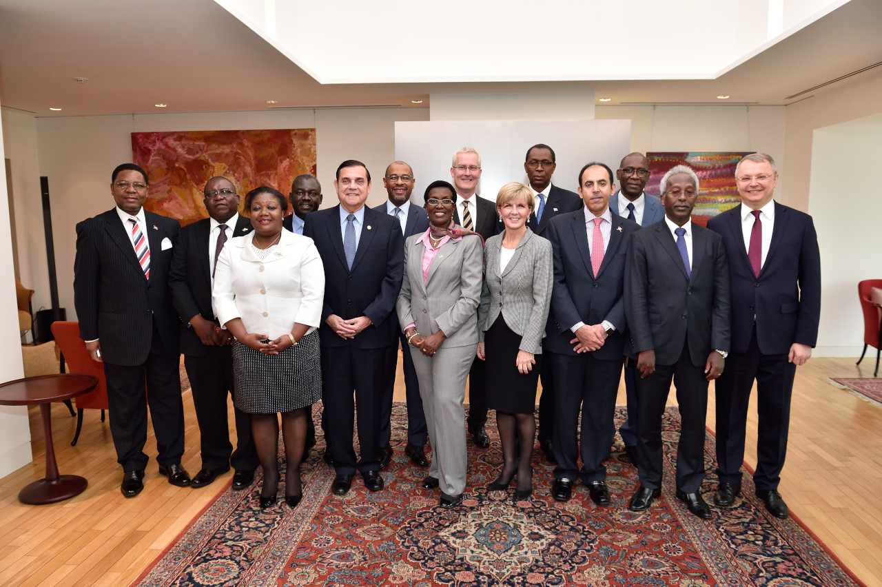 Foreign Minister Julie Bishop and Australian Ambassador to Japan, Mr Bruce Miller, meet with Non-resident Accredited Ambassadors in Tokyo at Ambassador Miller’s residence.