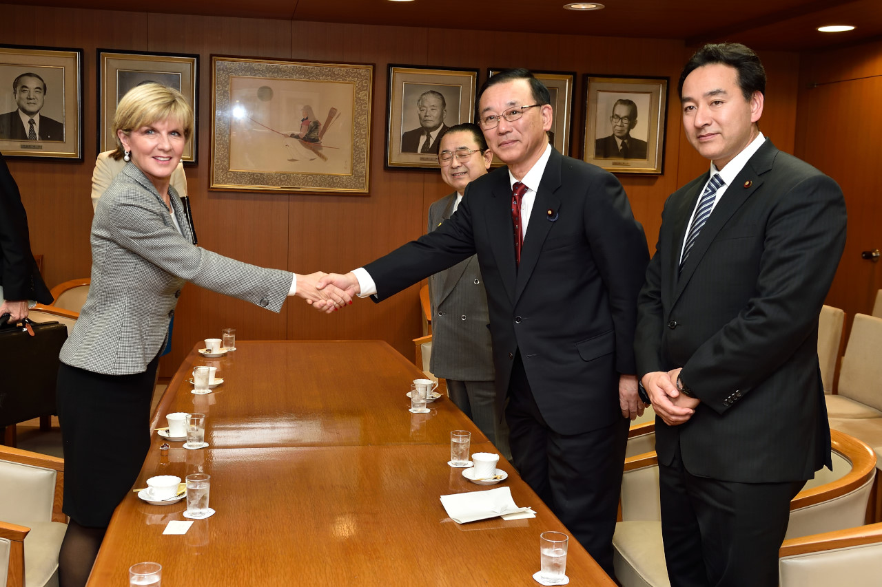 Foreign Minister Julie Bishop meets with Liberal Democratic Party (LDP) Secretary-General, Mr Sadakazu Tanigaki at LDP Headquarters.
