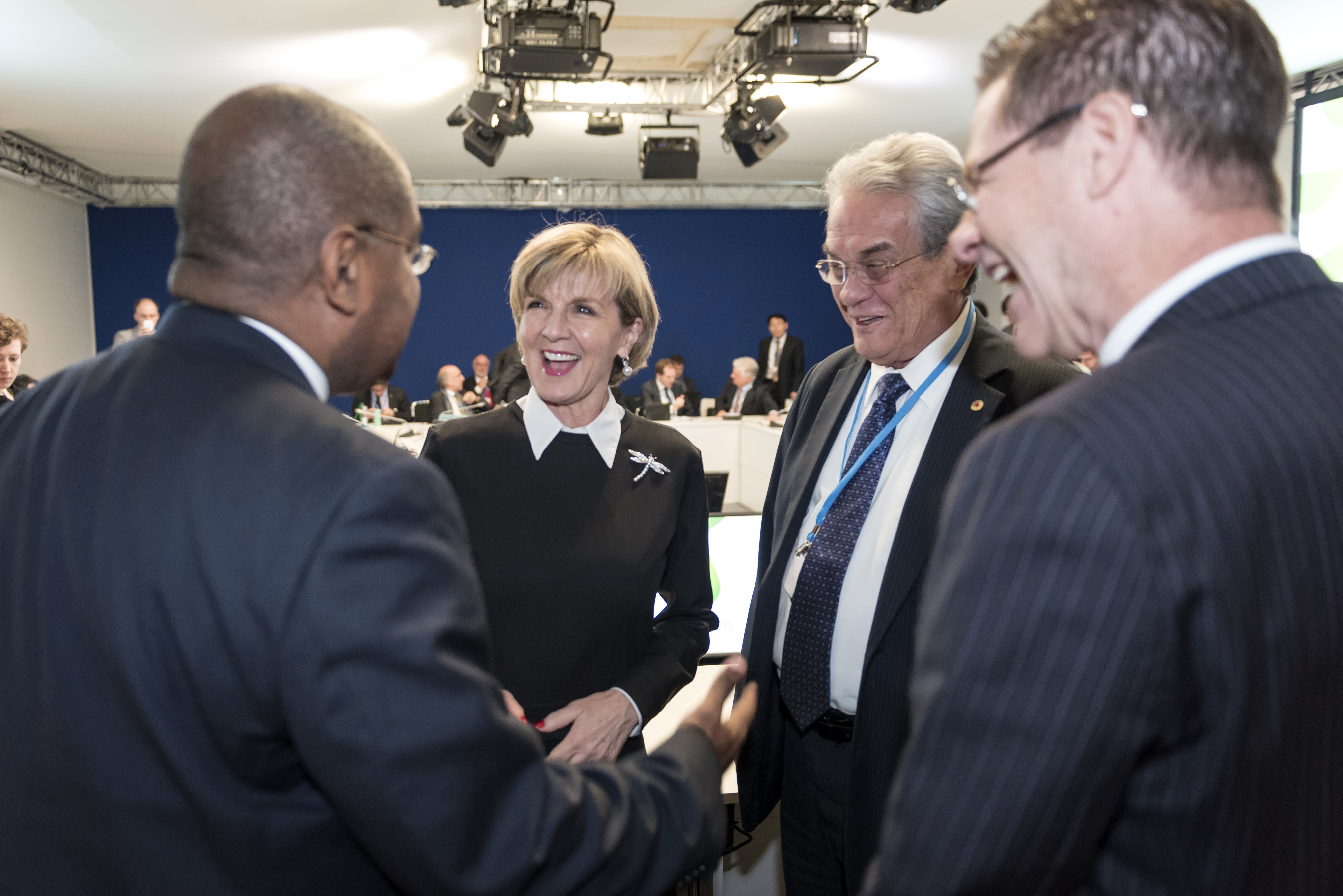 Minister Bishop and Marshall Islands Foreign Minister Tony de Brum at COP21 on Tuesday 8 December in Paris, France