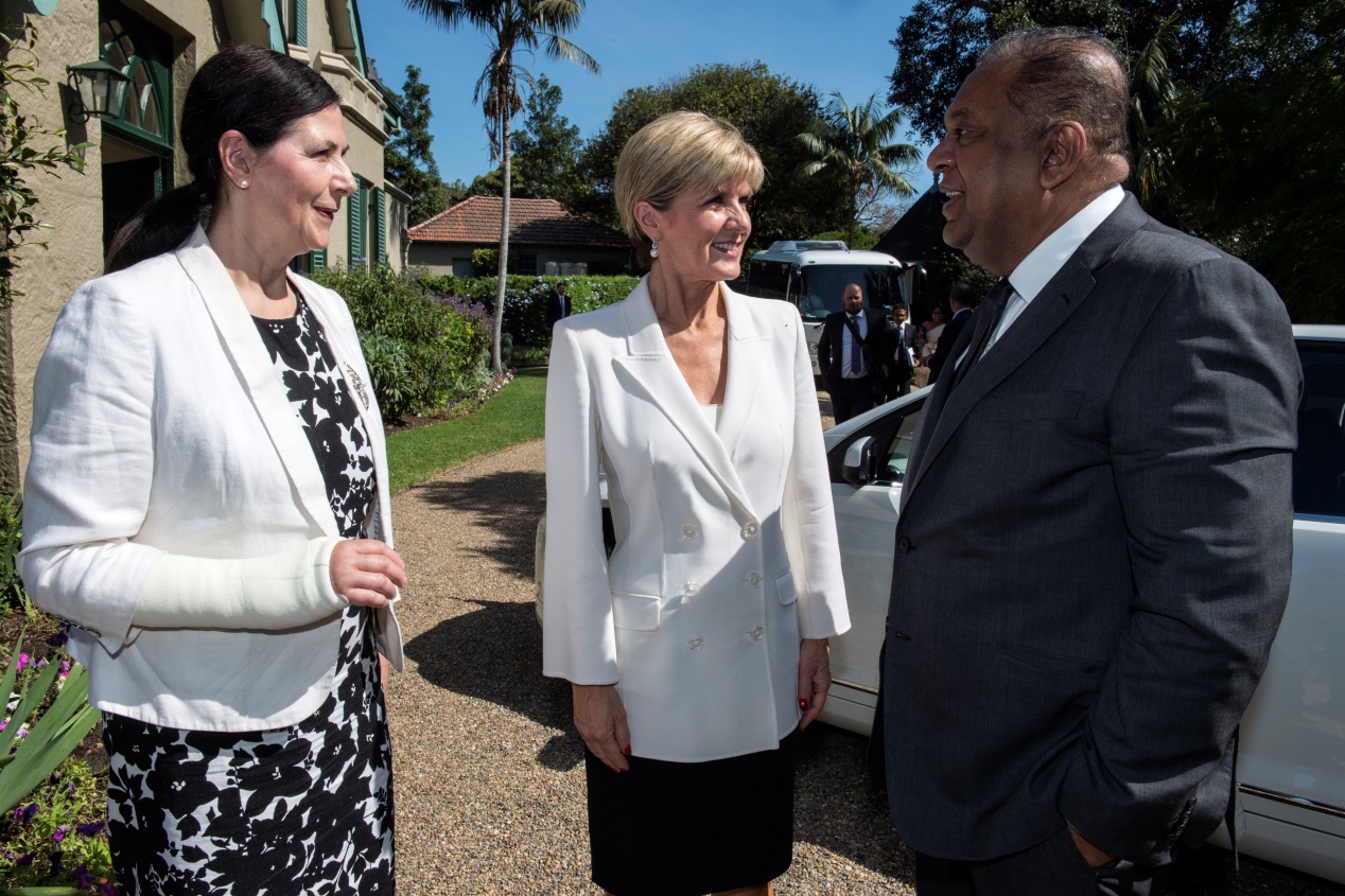 Foreign Minister Bishop and Senator Fierravanti-Wells meet Sri Lankan Foreign Minister Samaraweera ahead of the launch of the Asia Sports Partnership Program