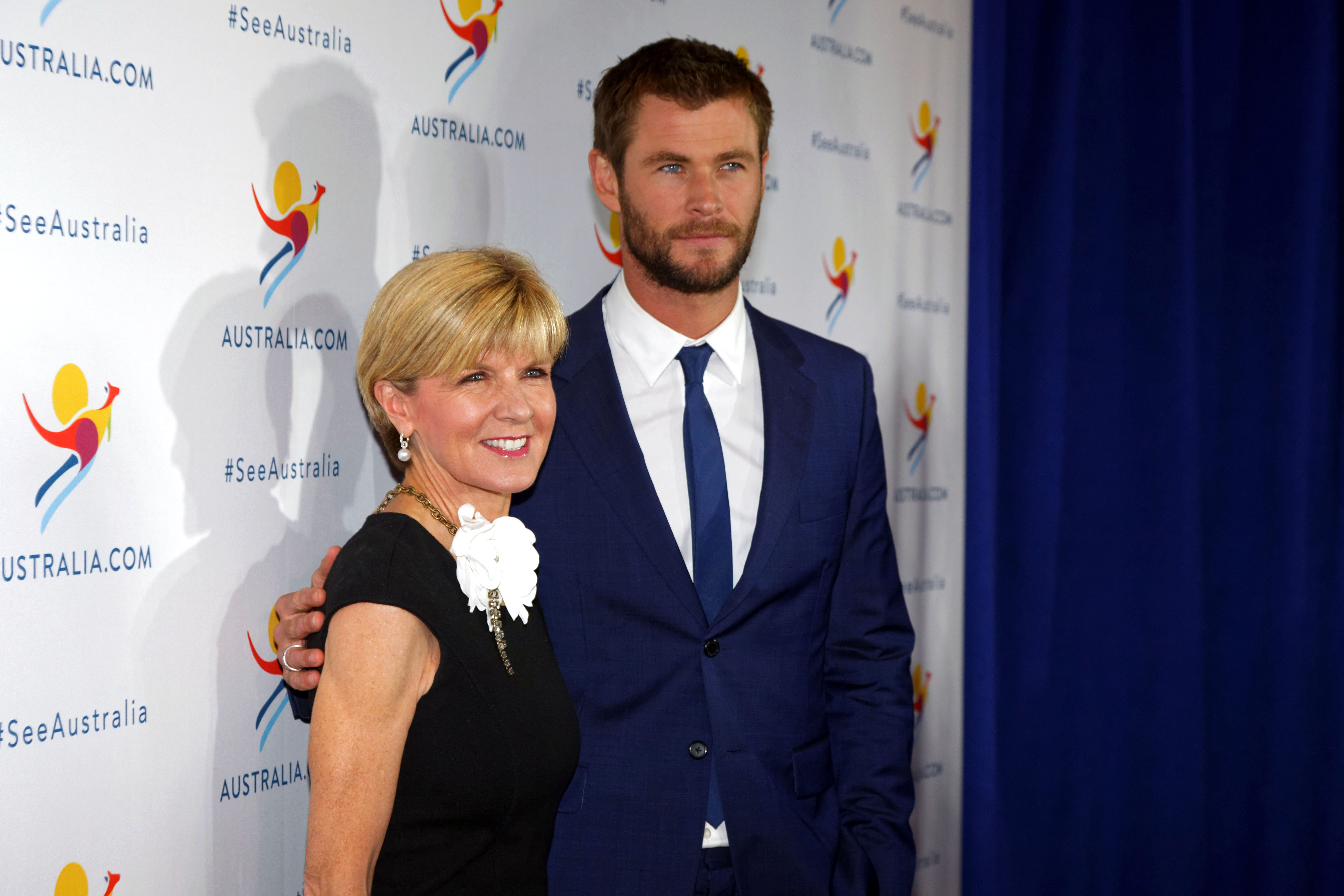 Foreign Minister Julie Bishop attends the Tourism Australia coastal and aquatic campaign launch in New York City with actor Chris Hemsworth. Photo by Trevor Collens/DFAT