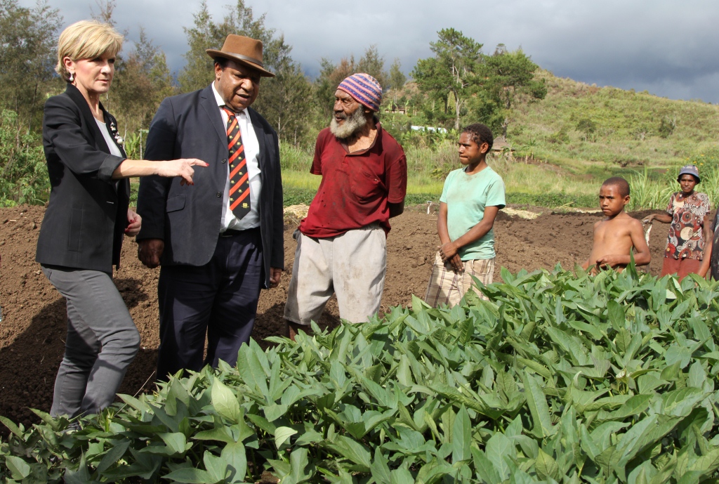 Foreign Minister Bishop visits drought affected gardens.