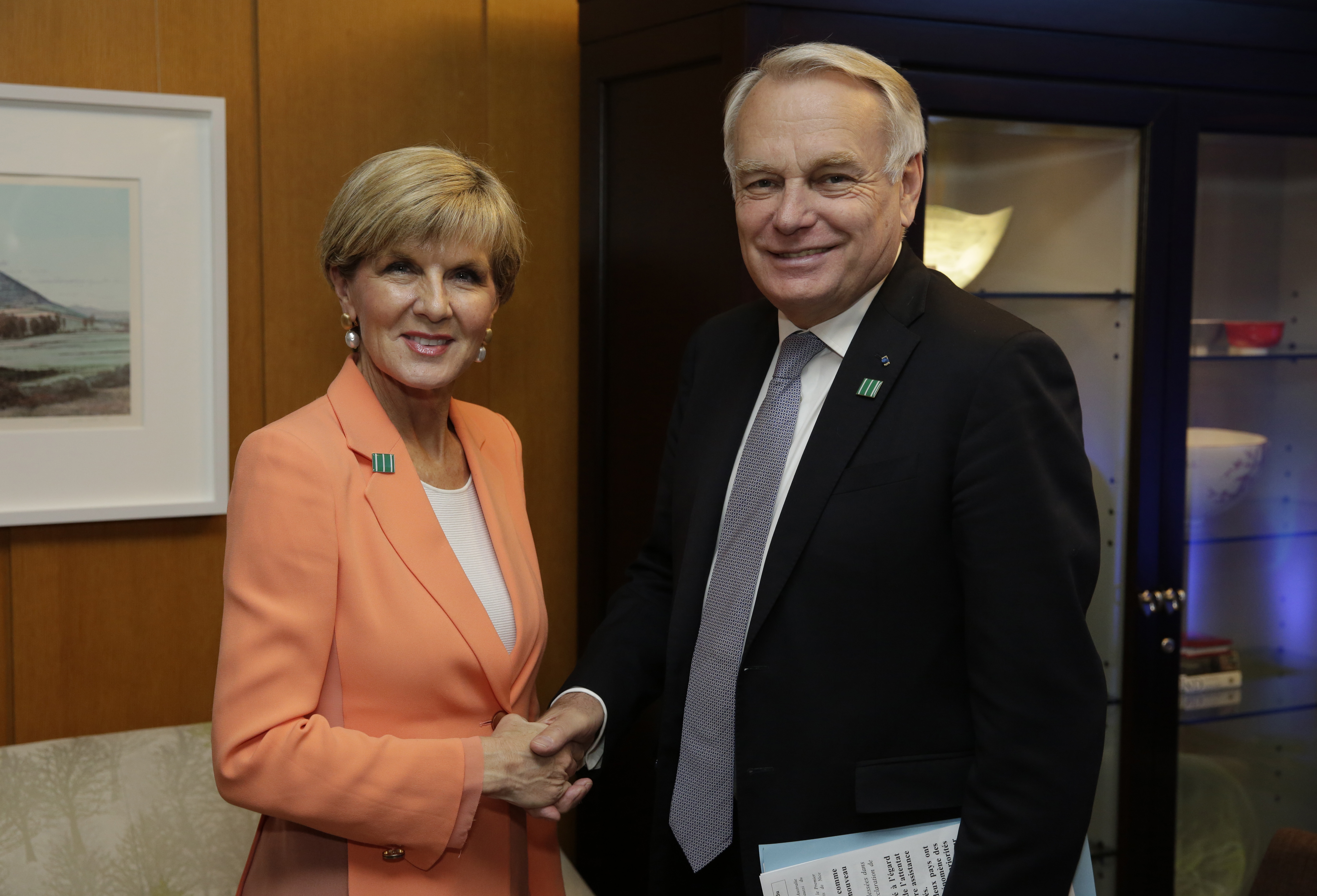Foreign Minister Julie Bishop meets with French Minister of Foreign Affairs and International Development Jean-Marc Ayrault at the Meeting of the Ministers of the Global Coalition to Counter ISIL. US Dept of State, Washington DC, 21 July 2016. Photo: Yuri Gripas