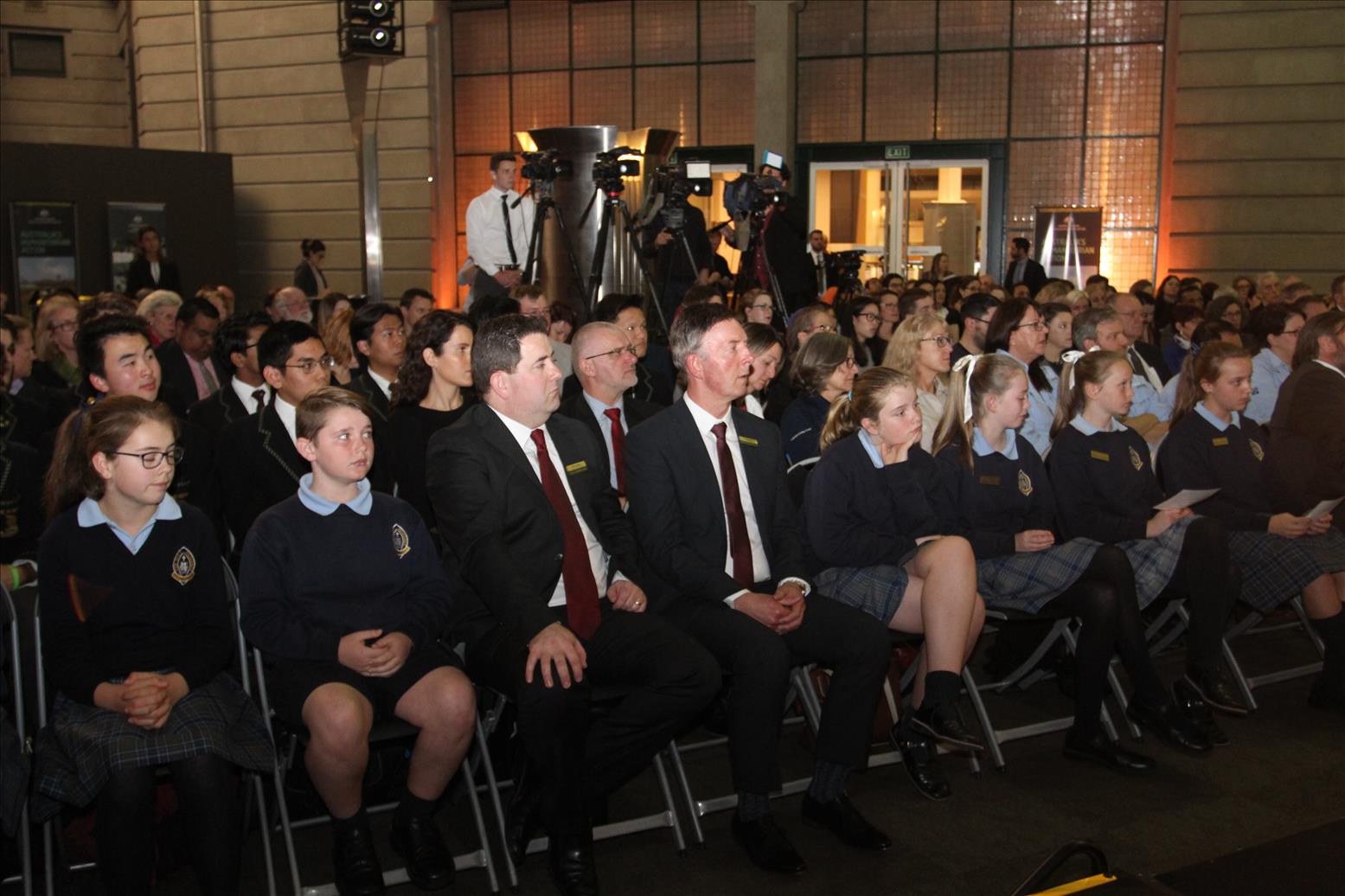 School students, humanitarian workers, medical specialists, Australian Defence Force personnel, NGOs, academics, private sector representatives and the media attended the World Humanitarian Day event. Photo credit: DFAT