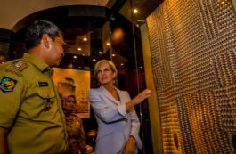 22 March 2016, Makassar, Indonesia: Foreign Minister Julie Bishop explains the origins of the Yirrkala Batik to Makassar Mayor Mr. Danny Pomanto at the Makassar City Museum.