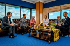 22 March 2016, Makassar, Indonesia: (left to right) Australian Consul-General in Makassar Mr. Richard Mathews, South Sulawesi Governor Mr. Syahrul Yasin Limpo, Hasanuddin University Rector Prof. Dwia Aries, Foreign Minister Julie Bishop, Australian Ambassador to Indonesia HE Mr Paul Grigson, and Minister-Counsellor Dr. Bradley Armstrong at Hasanuddin University, Makassar.