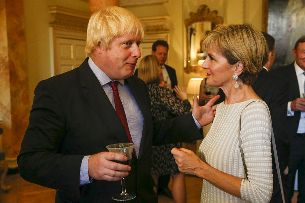 Foreign Minister Julie Bishop with UK Foreign Secretary Boris Johnson at 10 Downing Street for the commencement of the annual Australia-UK Ministerial Consultations (AUKMIN). Photo credit: Jim Ross