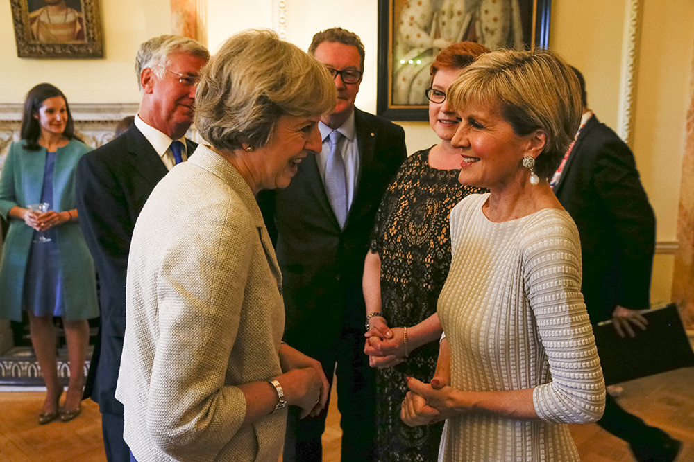 Foreign Minister Julie Bishop with UK Prime Minister Theresa May at 10 Downing Street for the commencement of the annual Australia-UK Ministerial Consultations (AUKMIN). Photo credit: Jim Ross